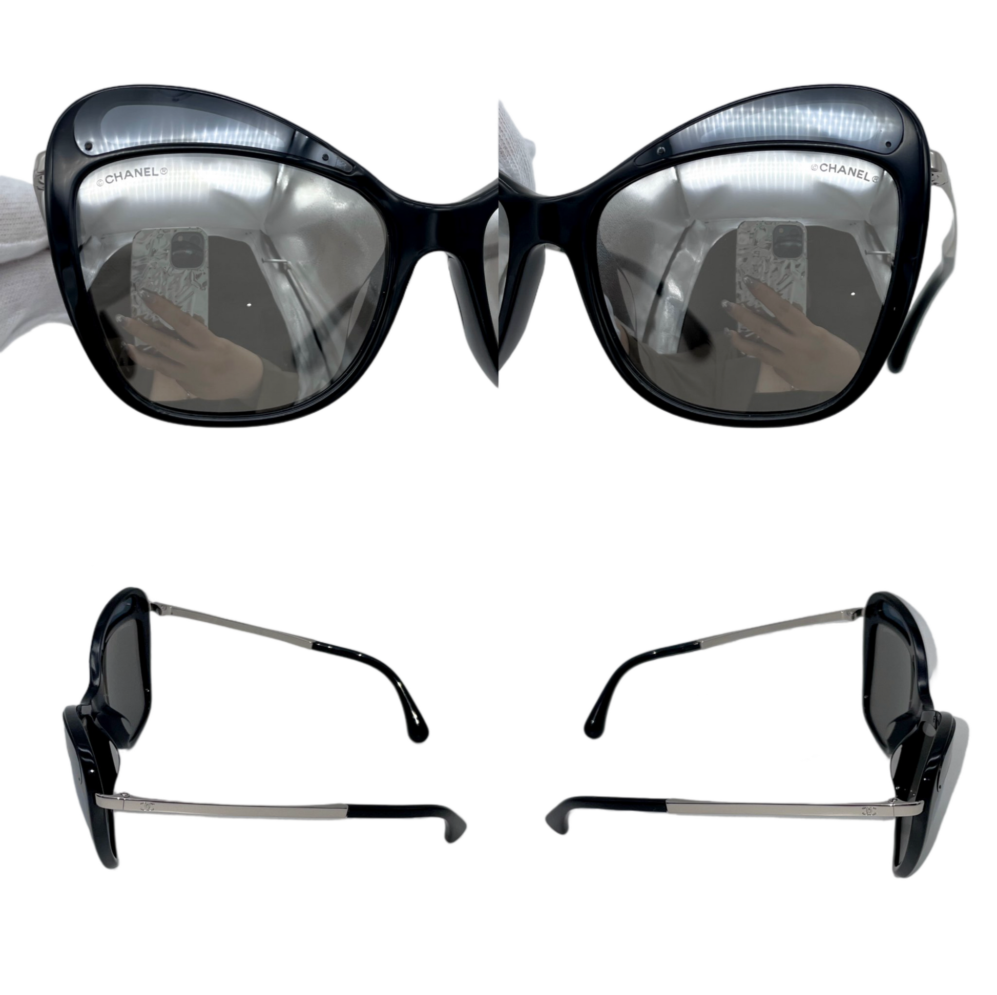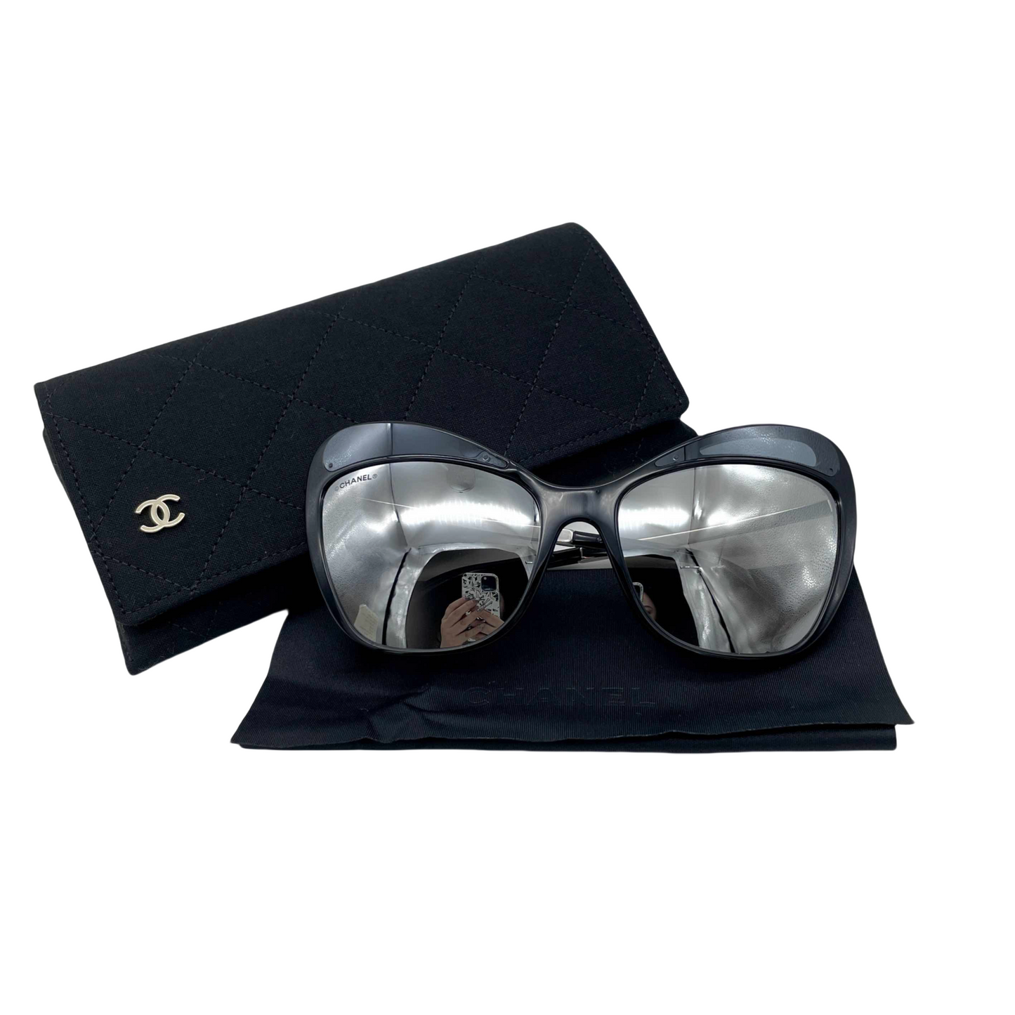 RARE☆☆☆CHANEL CC LOGOS Mirror Sunglasses Black & Silver
