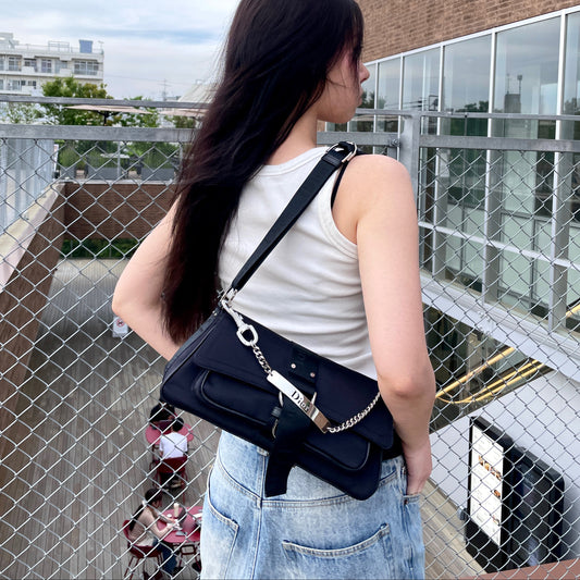 RARE☆☆☆☆CHRISTIAN DIOR 2003 Preloved Hardcore Rhinestone Chain Handle 2-Way Shoulder Bag Black
