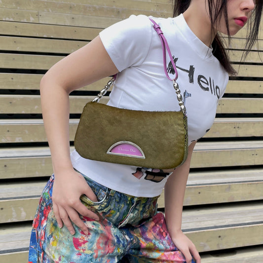 RARE☆☆☆☆☆CHRISTIAN DIOR Malice Pearl Harako Python Shoulder Bag Green & Pink