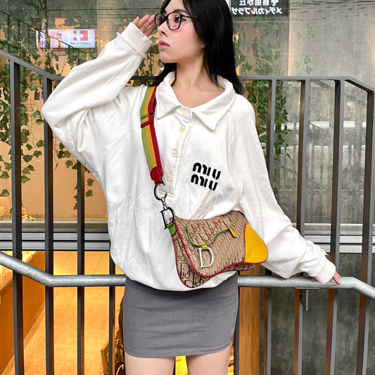 RARE☆☆☆☆☆CHRISTIAN DIOR 2004 Preloved Rasta Line Trotter Saddle Shoulder Bag Brown & Multicolor