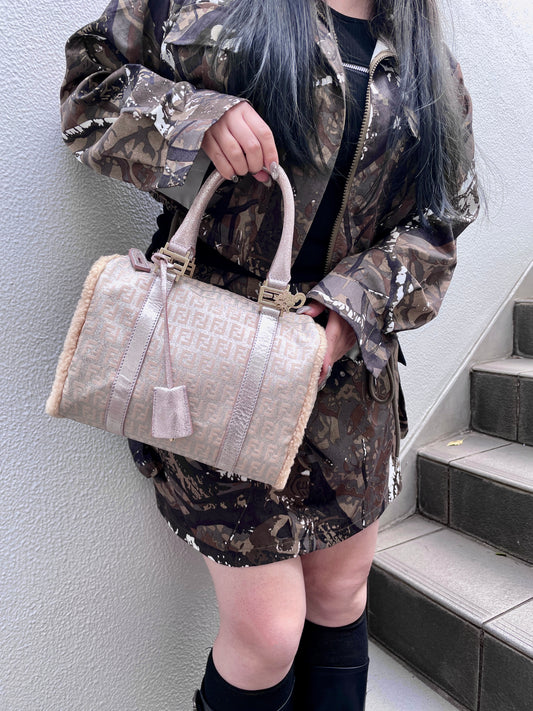 RARE☆☆☆FENDI Zucca Mesh Boston Handbag PM White