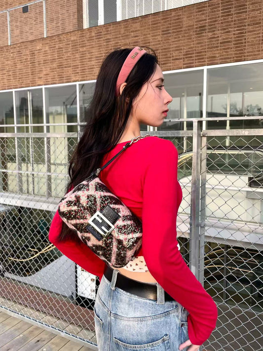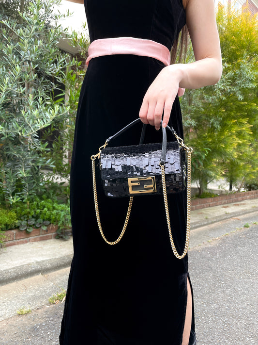 2022 New York Baguette 25th Anniversary Collection RARE☆☆☆☆☆FENDI Sequins Mini Mamma Baguette 2-Way Hand Bag Black & Gold