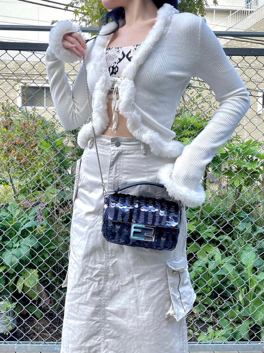 RARE☆☆☆☆☆FENDI Sequins Mini Mamma Baguette 2-Way Hand Bag Navy & Silver