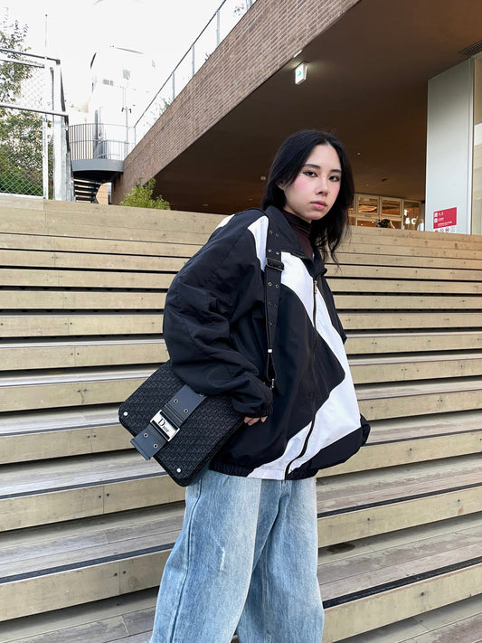RARE☆☆☆CHRISTIAN DIOR Columbus Street Chic Messenger Shoulder Bag Black x Silver