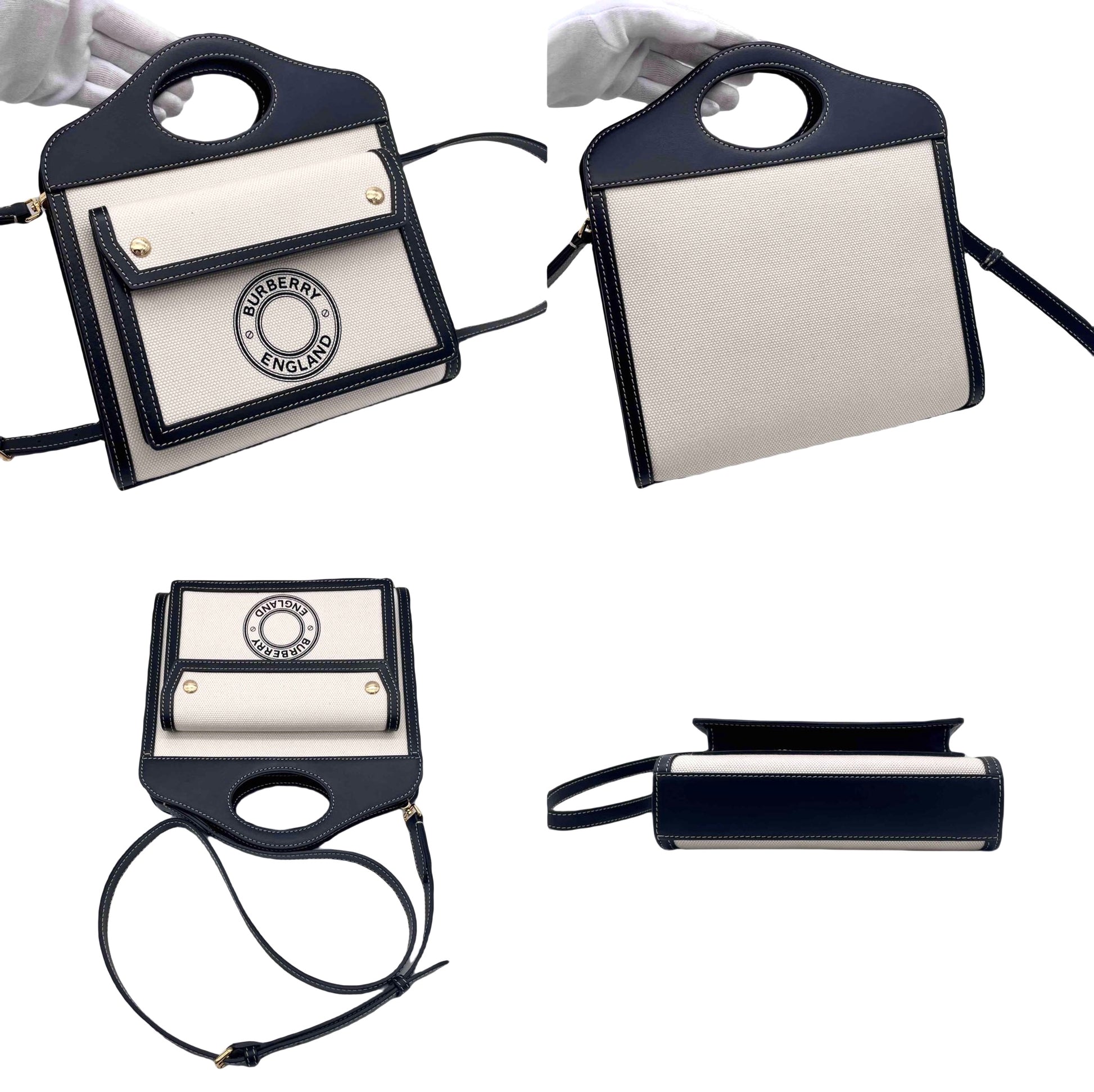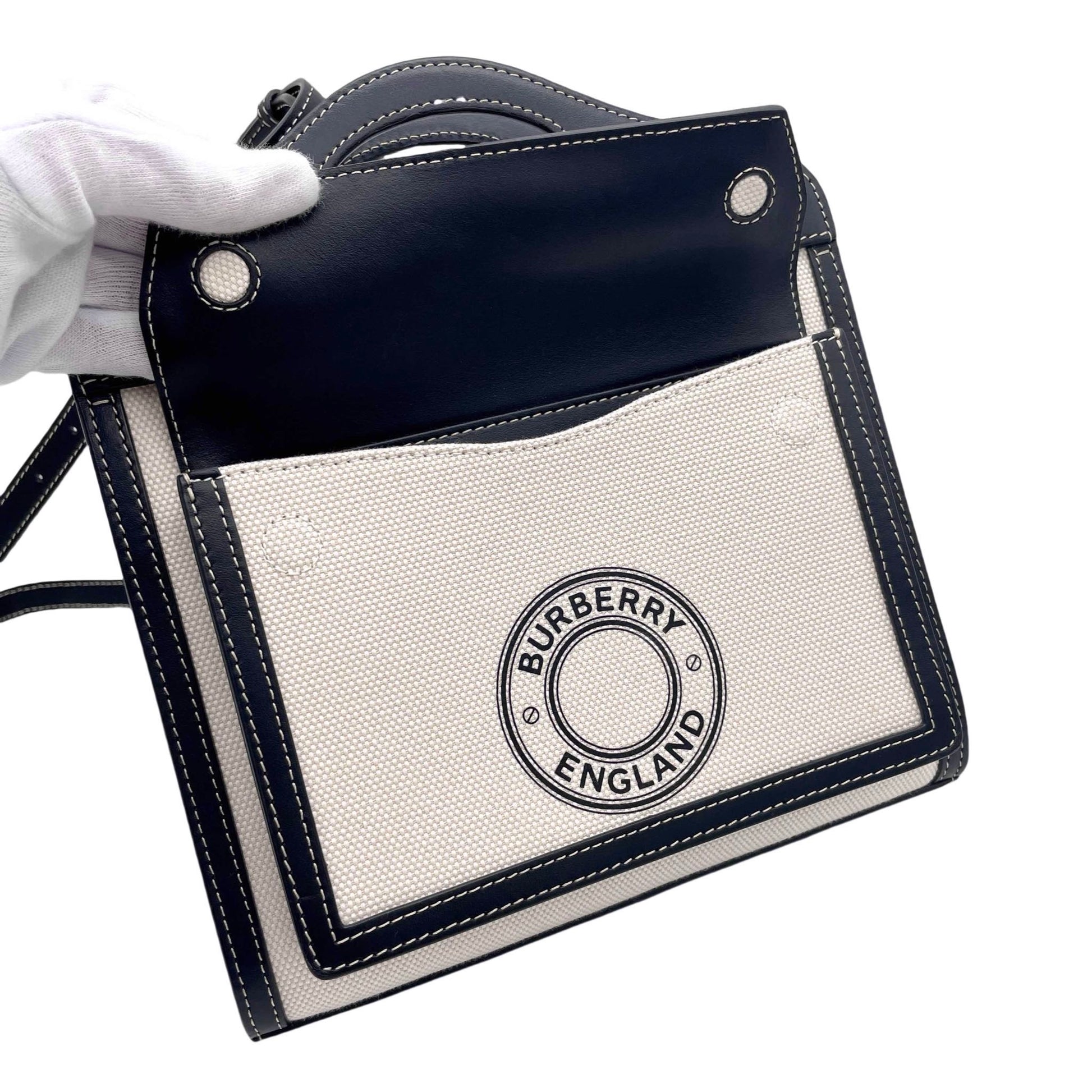 BURBERRY logo迷你口袋包2way手提包斜挎单肩-黑色米色【未使用,参考价213,400】