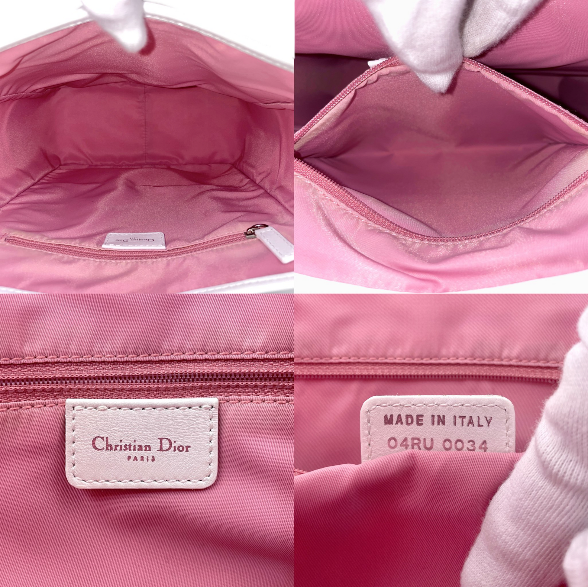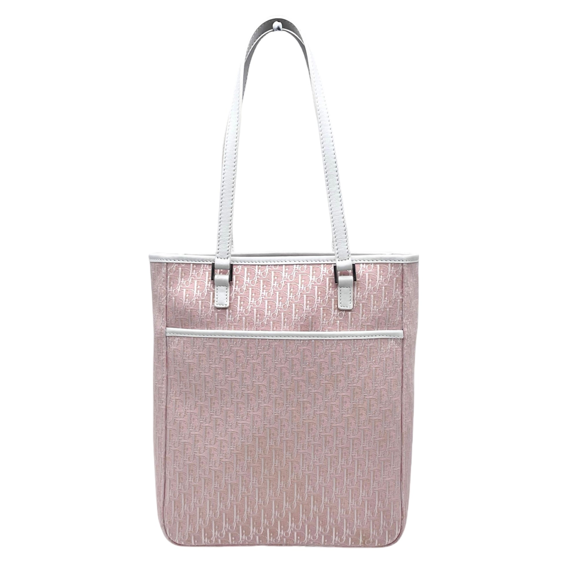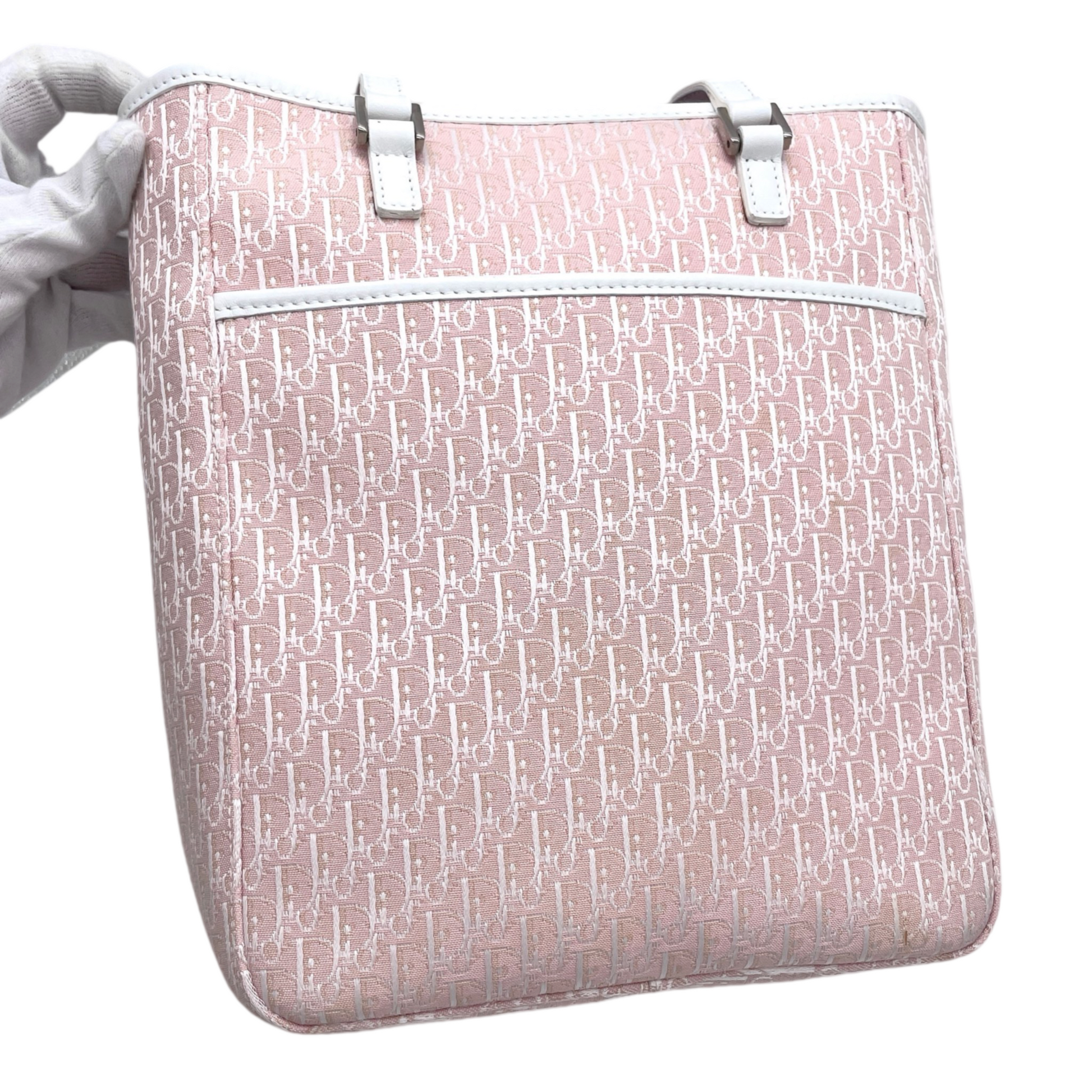 CHRISTIAN DIOR Trotter Canvas Shoulder Tote Bag Pink & White