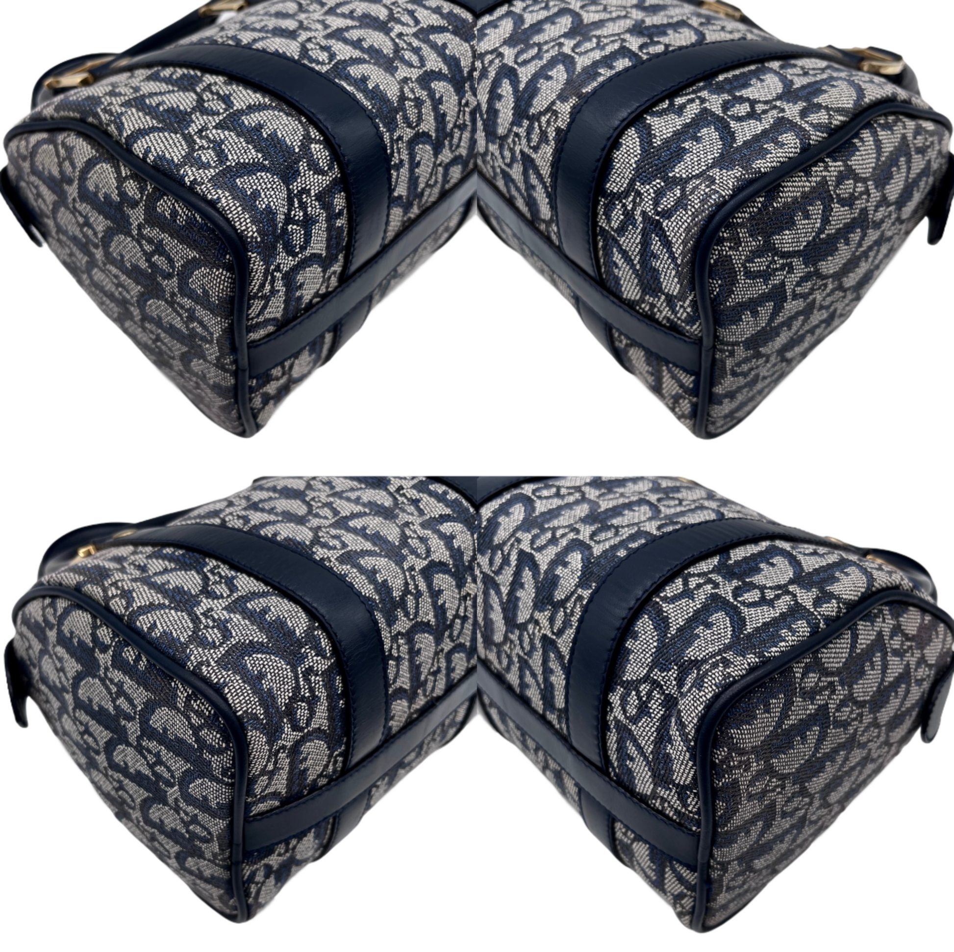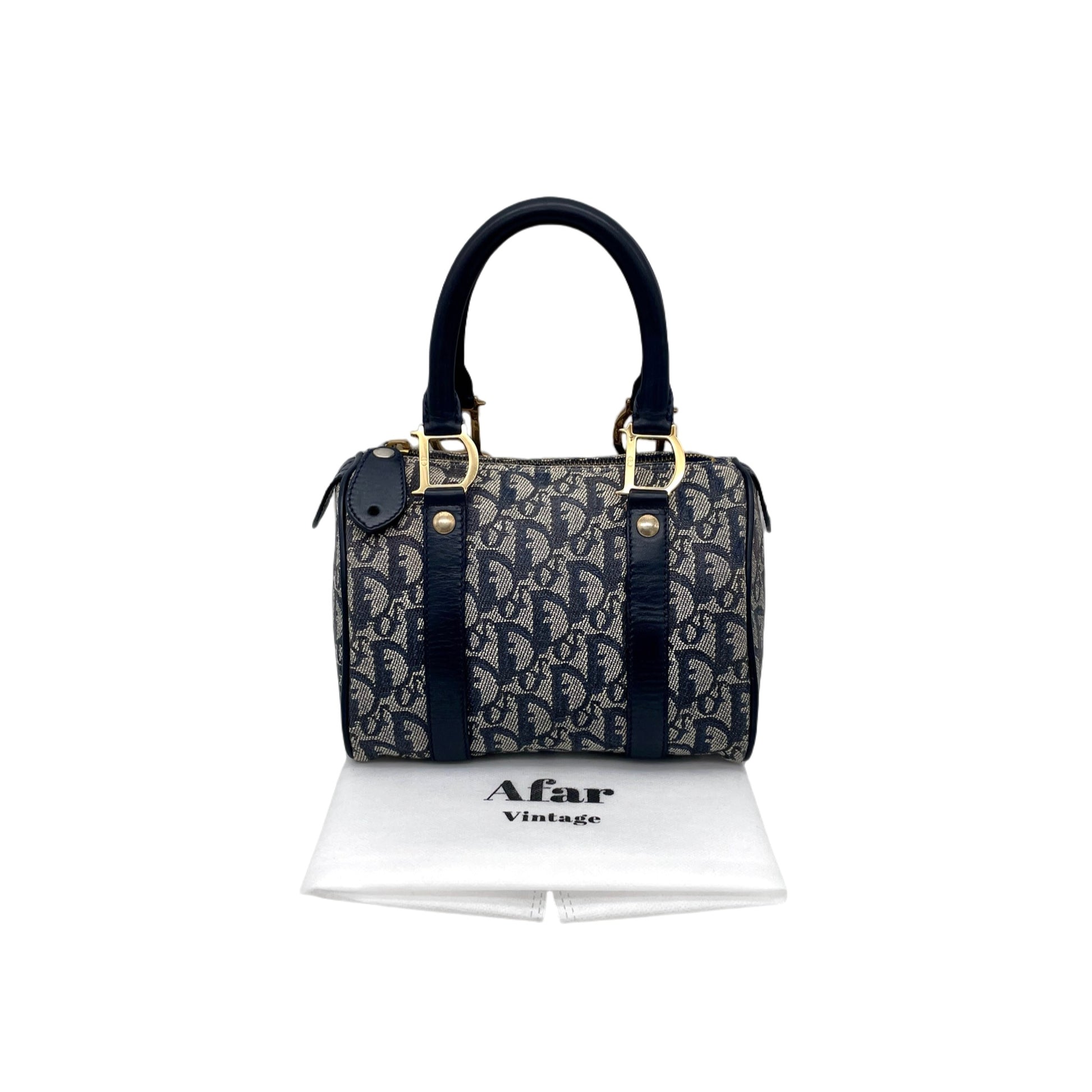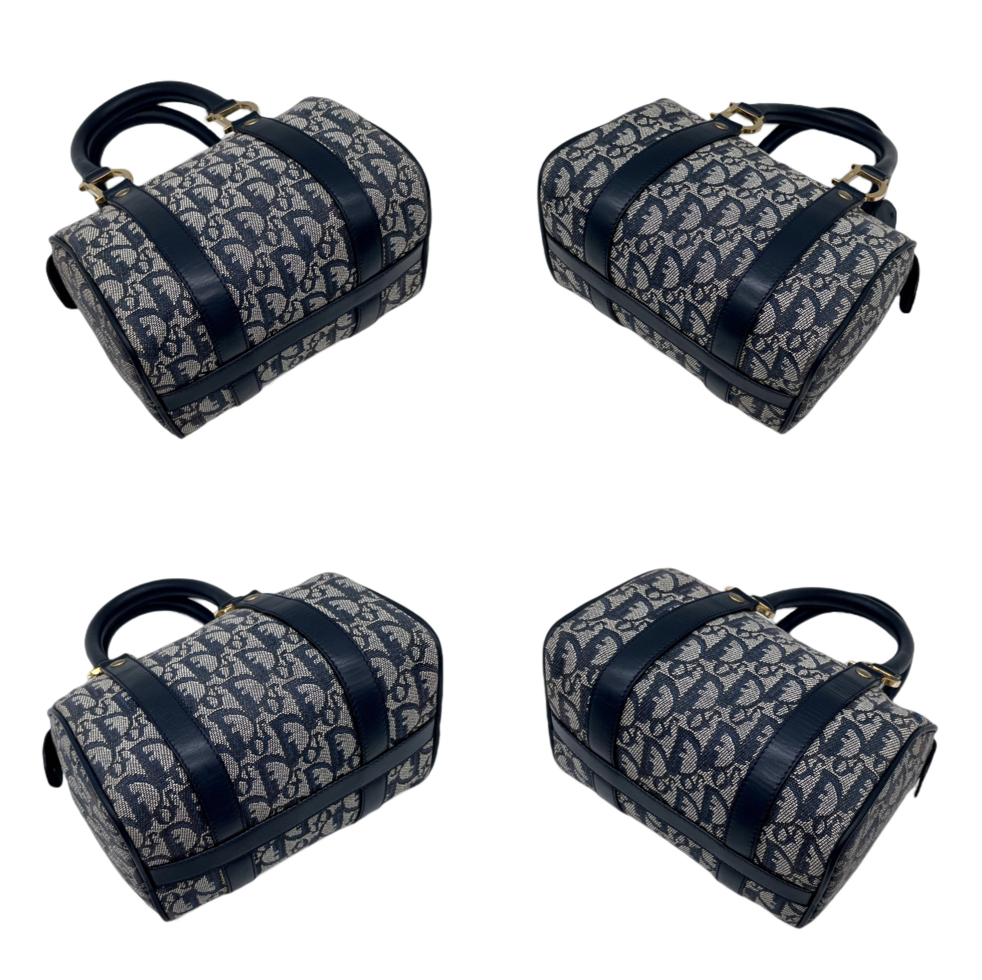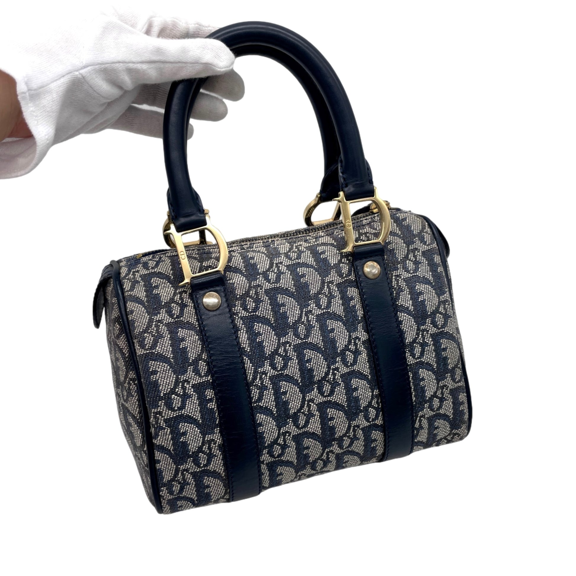 RARE☆☆☆CHRISTIAN DIOR Trotter Canvas Mini Boston Handbag 20cm Navy & Gold