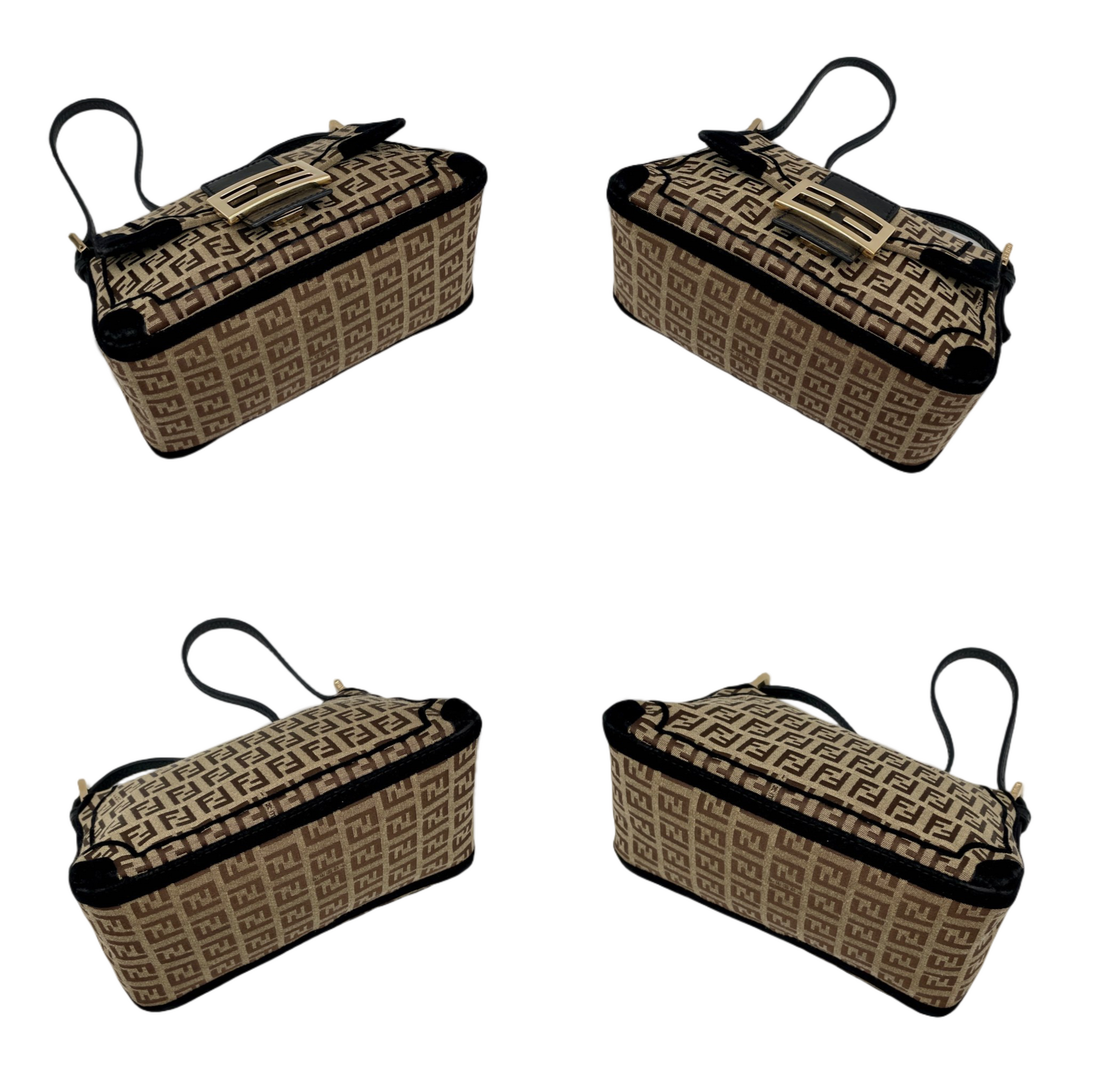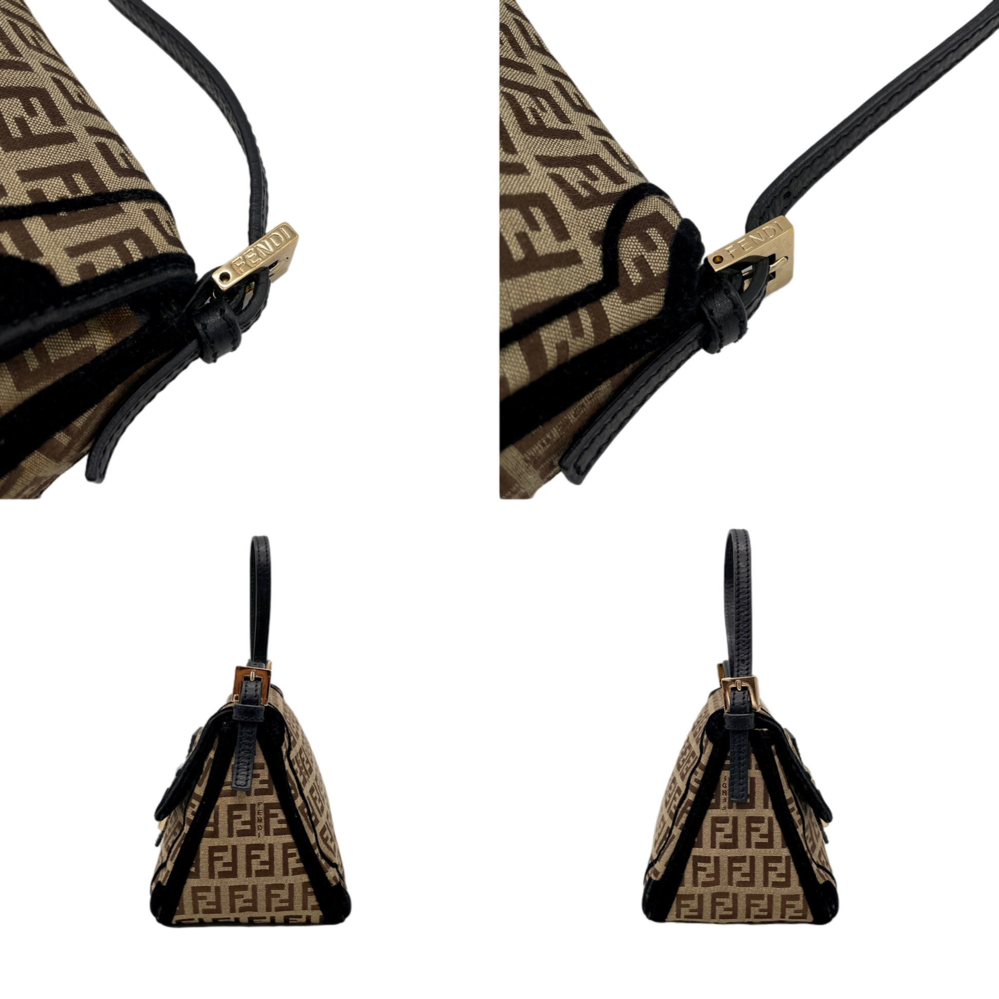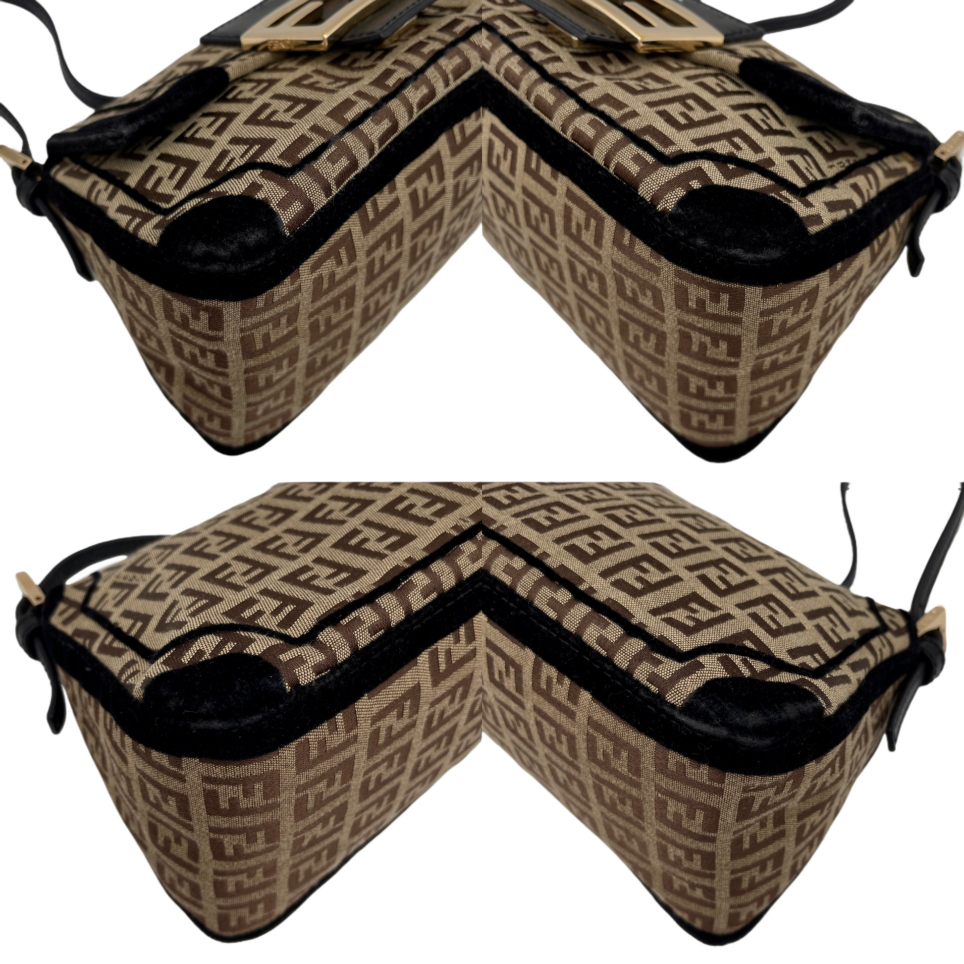 RARE☆☆☆☆FENDI Velvet Zucchino Canvas Mini Mamma Baguette Shoulder Bag Brown & Gold