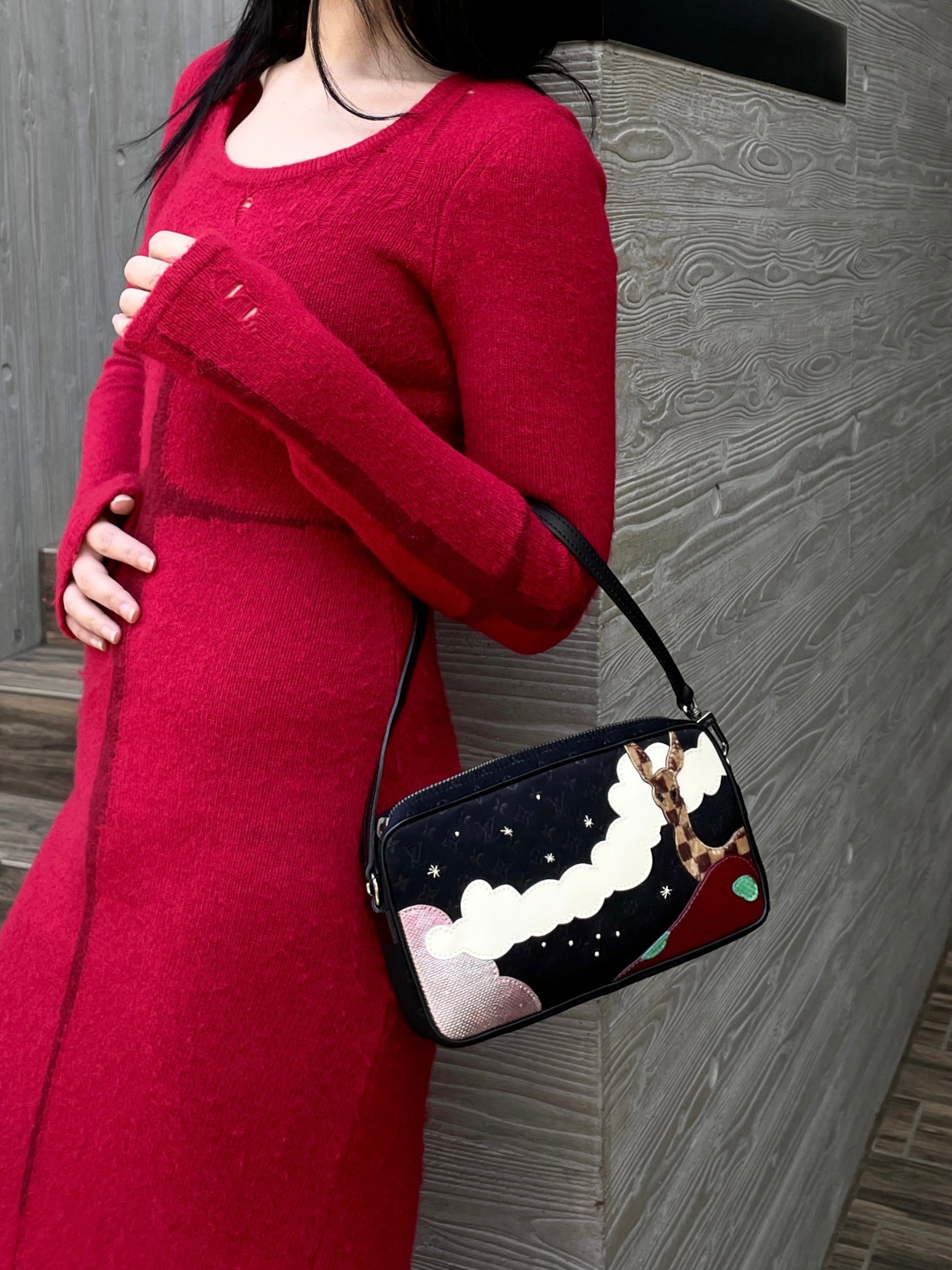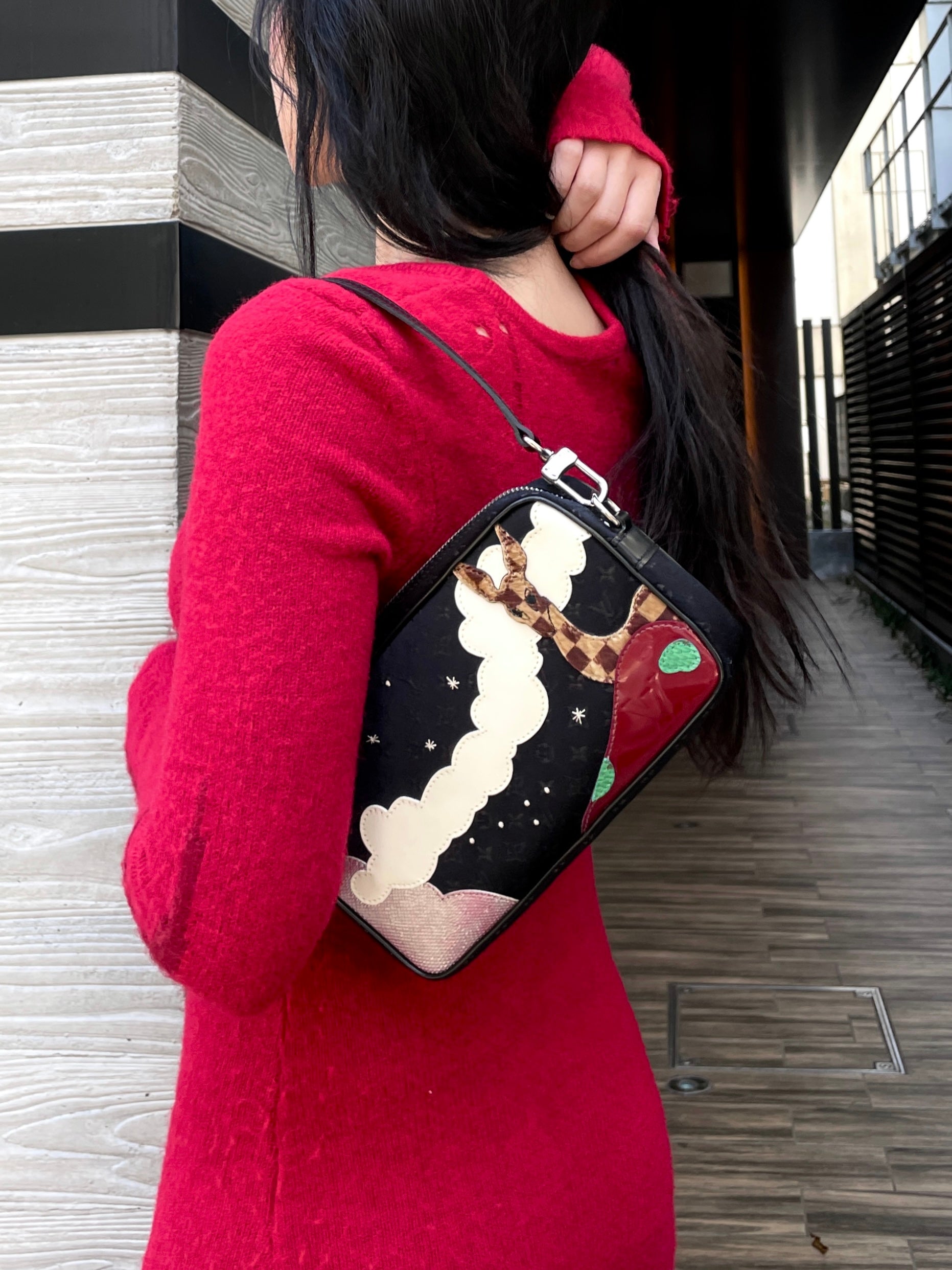 RARE☆☆☆LOUIS VUITTON Monogram Satin Pochette Conte de Fées & Animal Shoulder Bag M92275