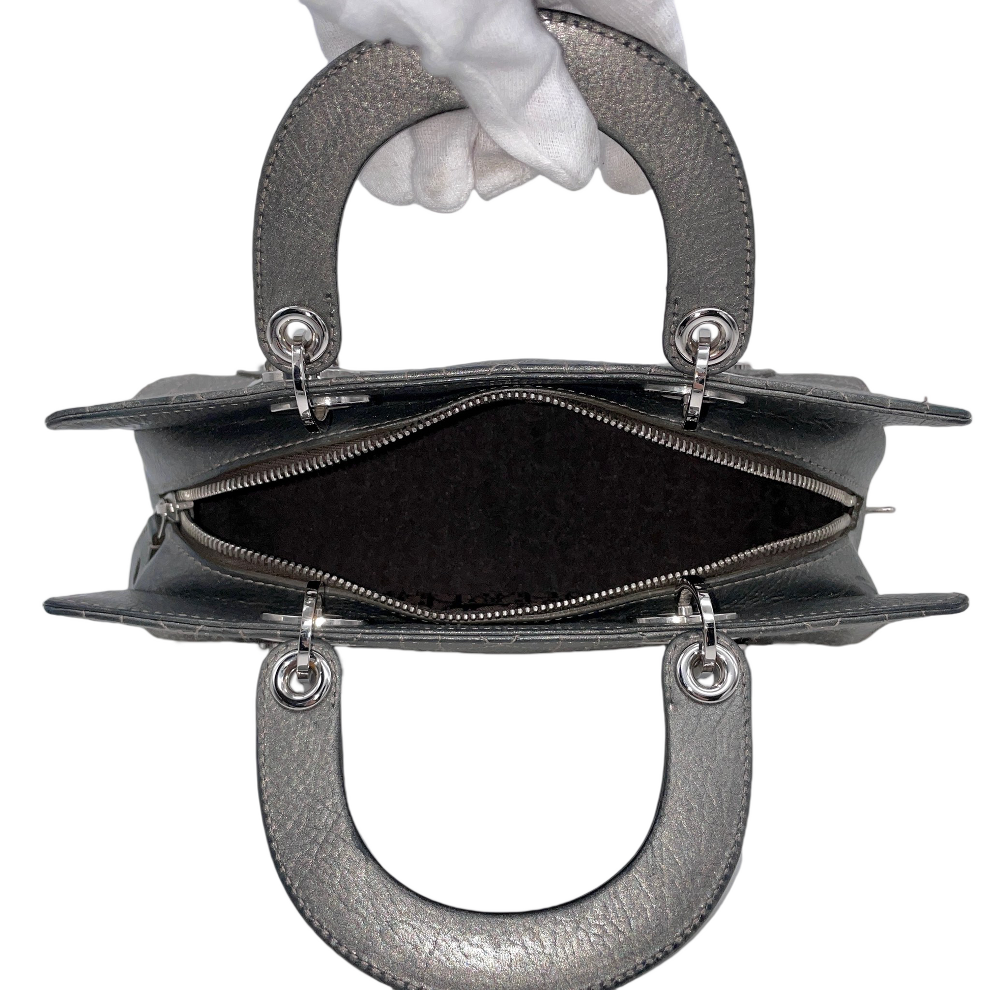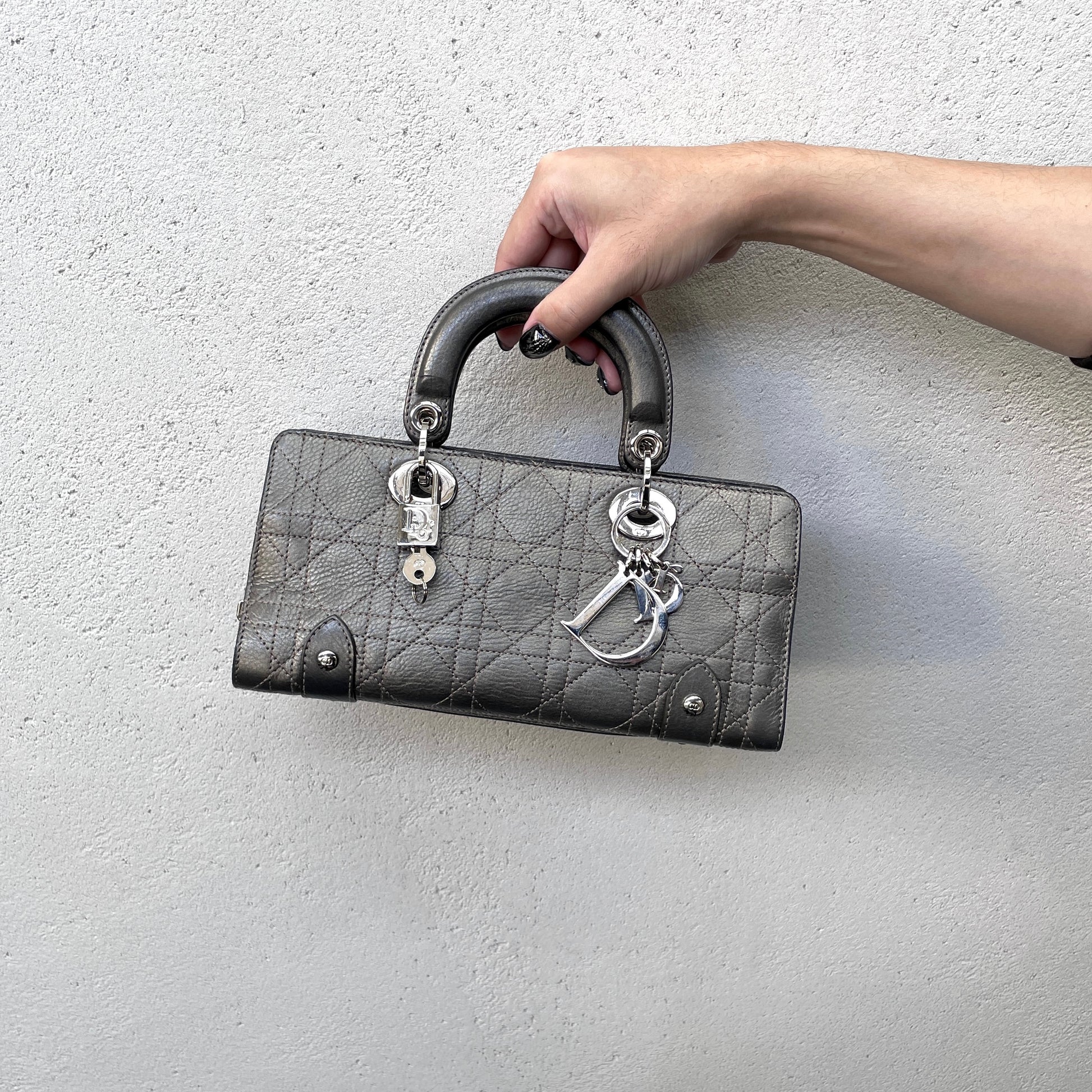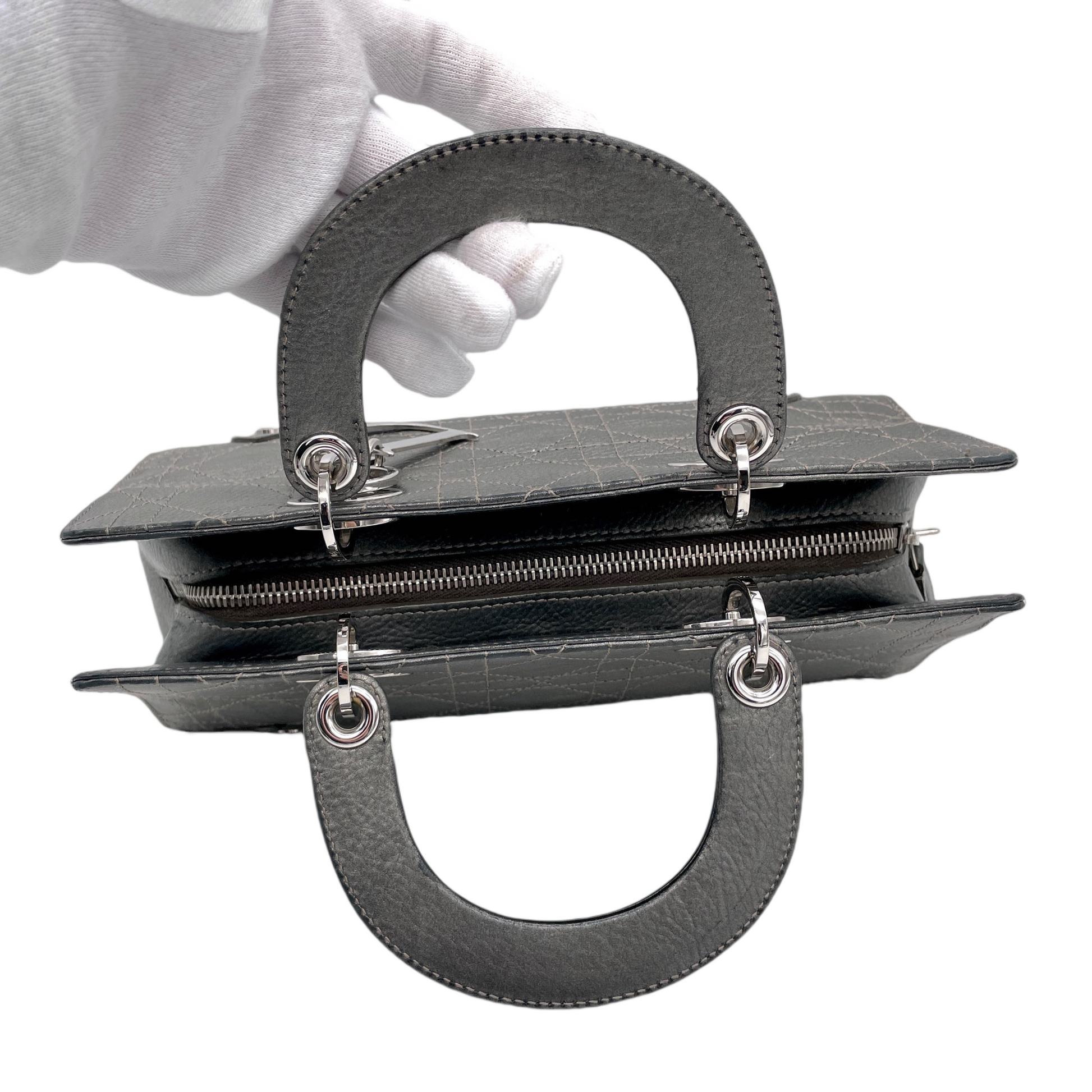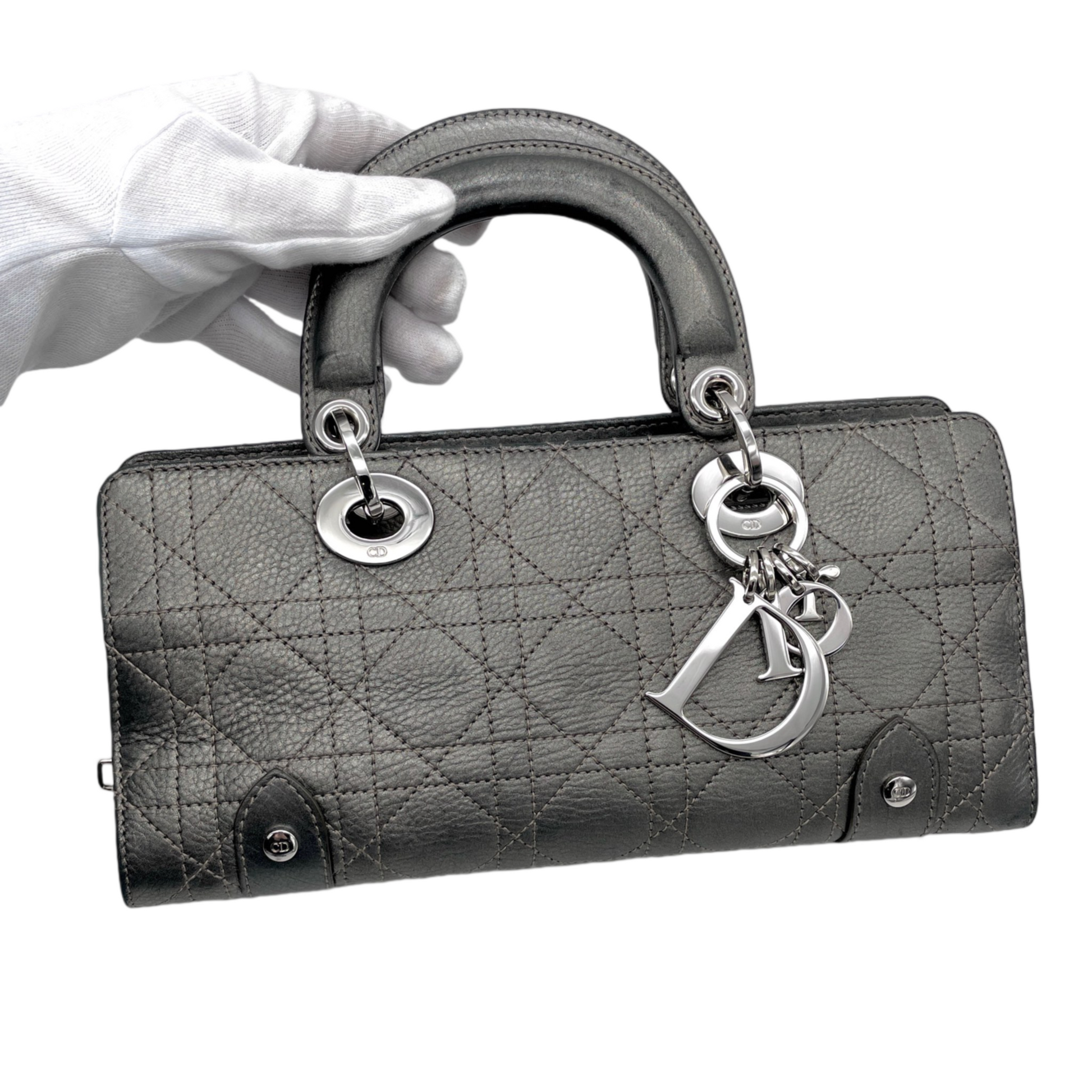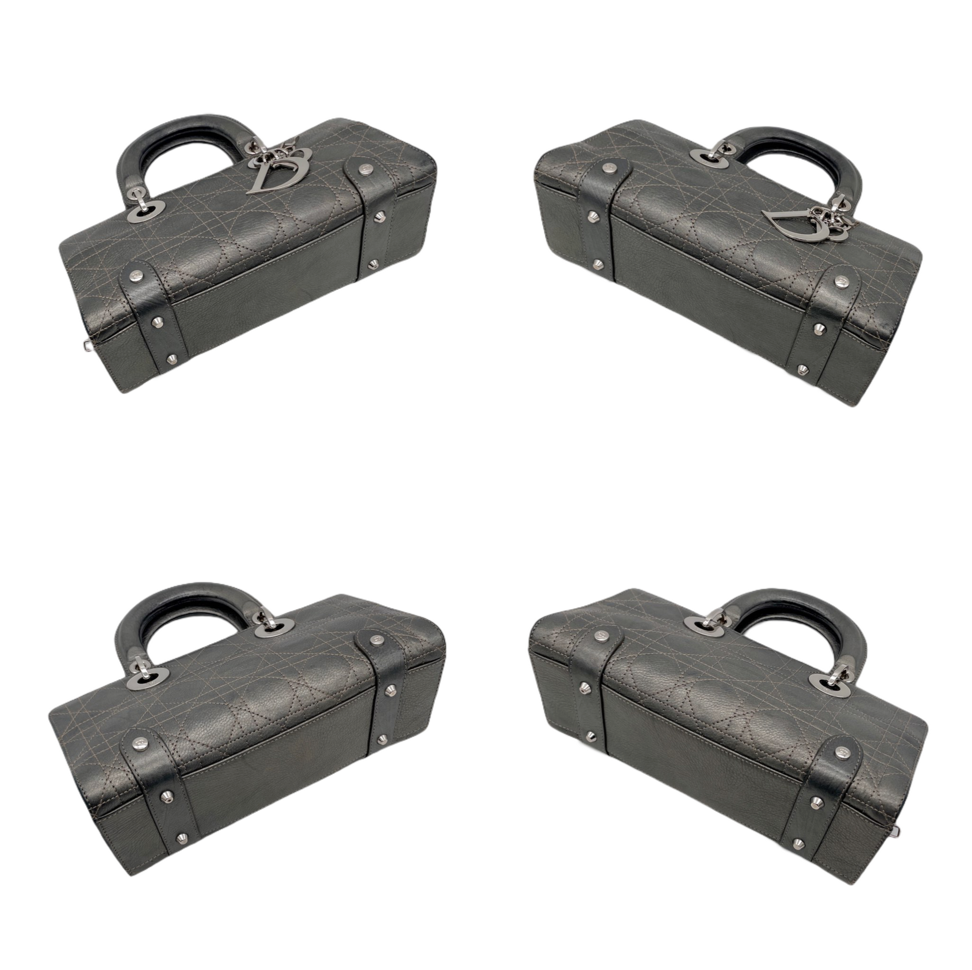 RARE☆☆☆☆CHRISTIAN DIOR Preloved Lady D-JOY Cannage Leather Hand Bag Limited Edition Color Gray & Silver