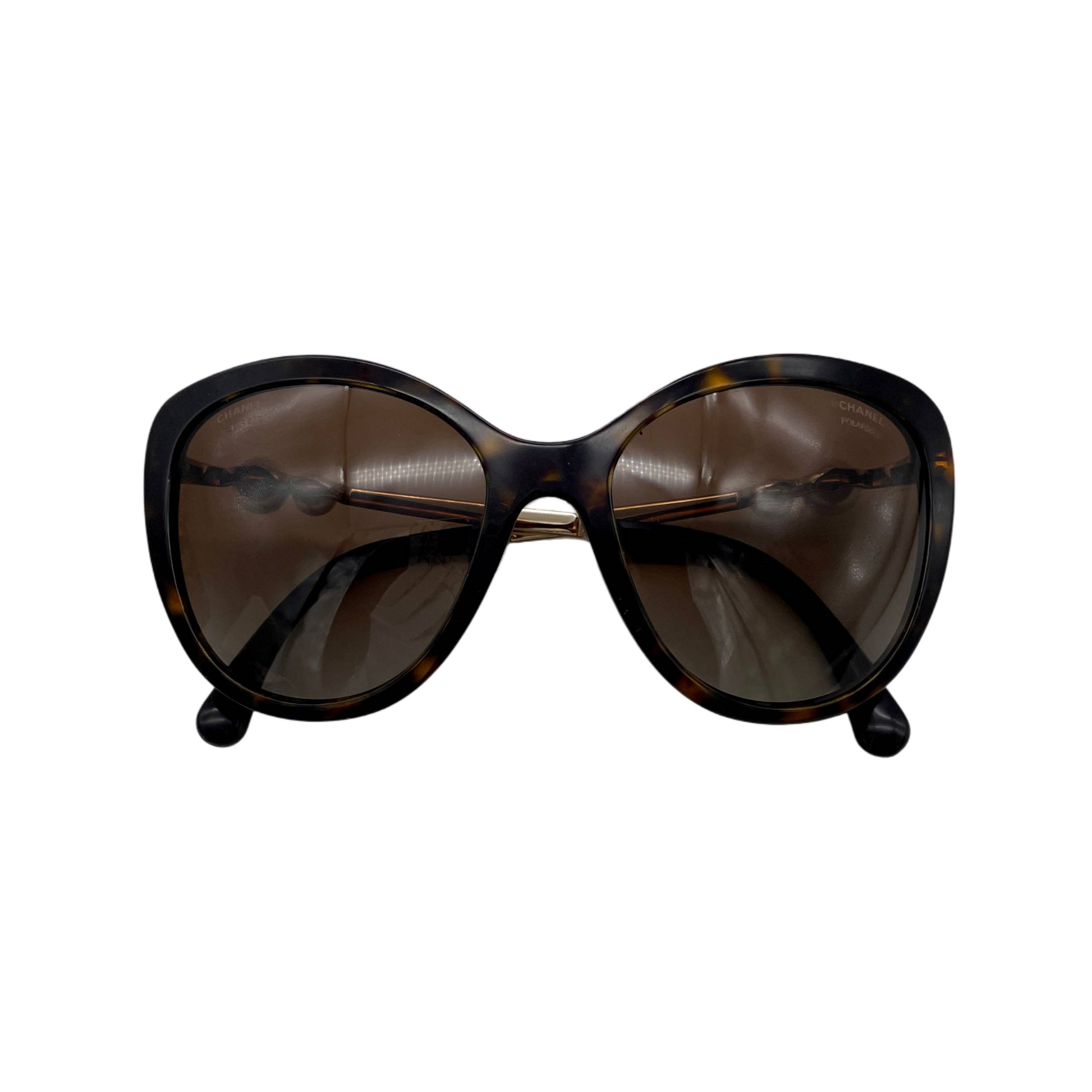 CHANEL CC LOGOS Pearl-Embellished Cat-Eye Sunglasses Brown & Gold