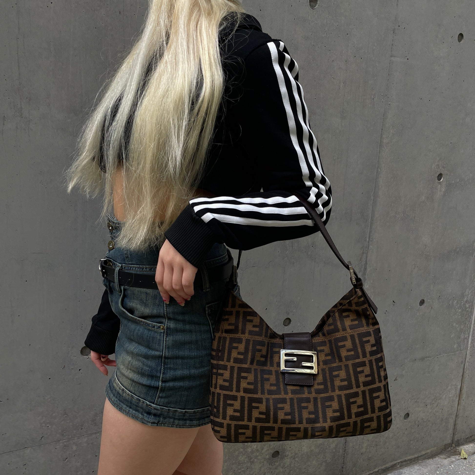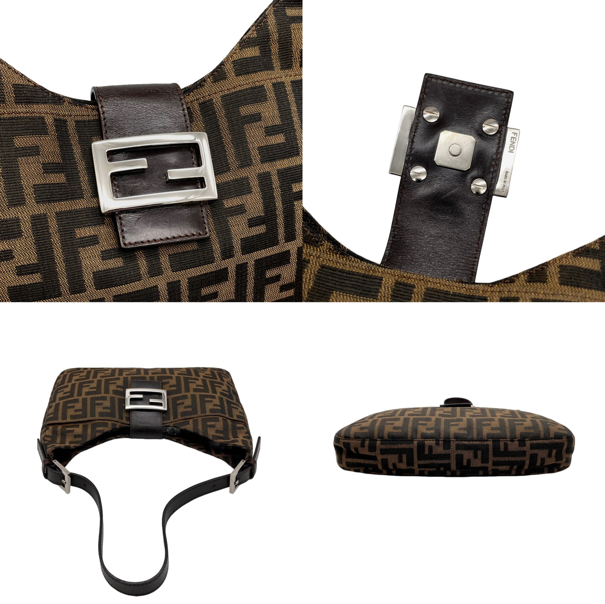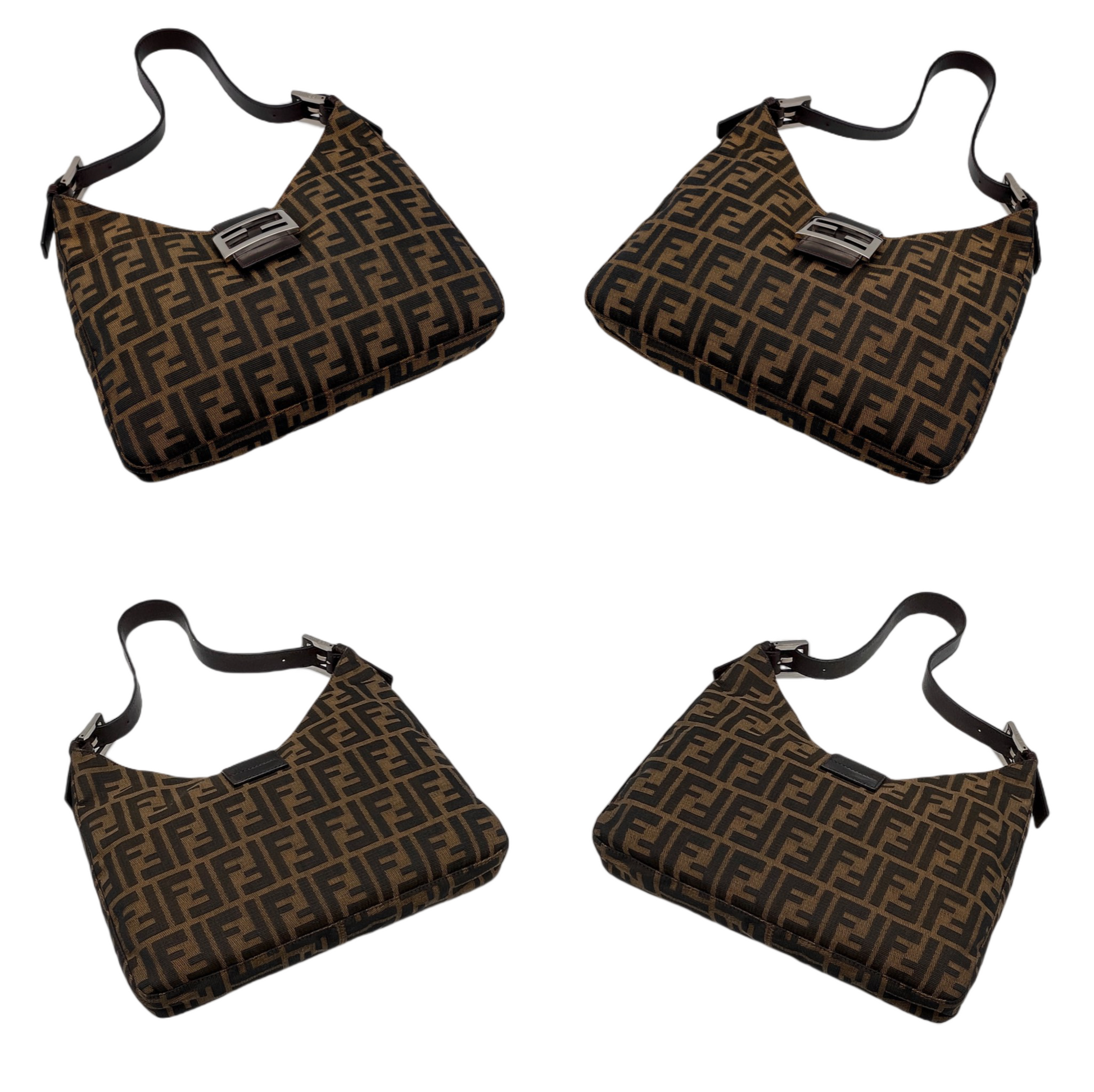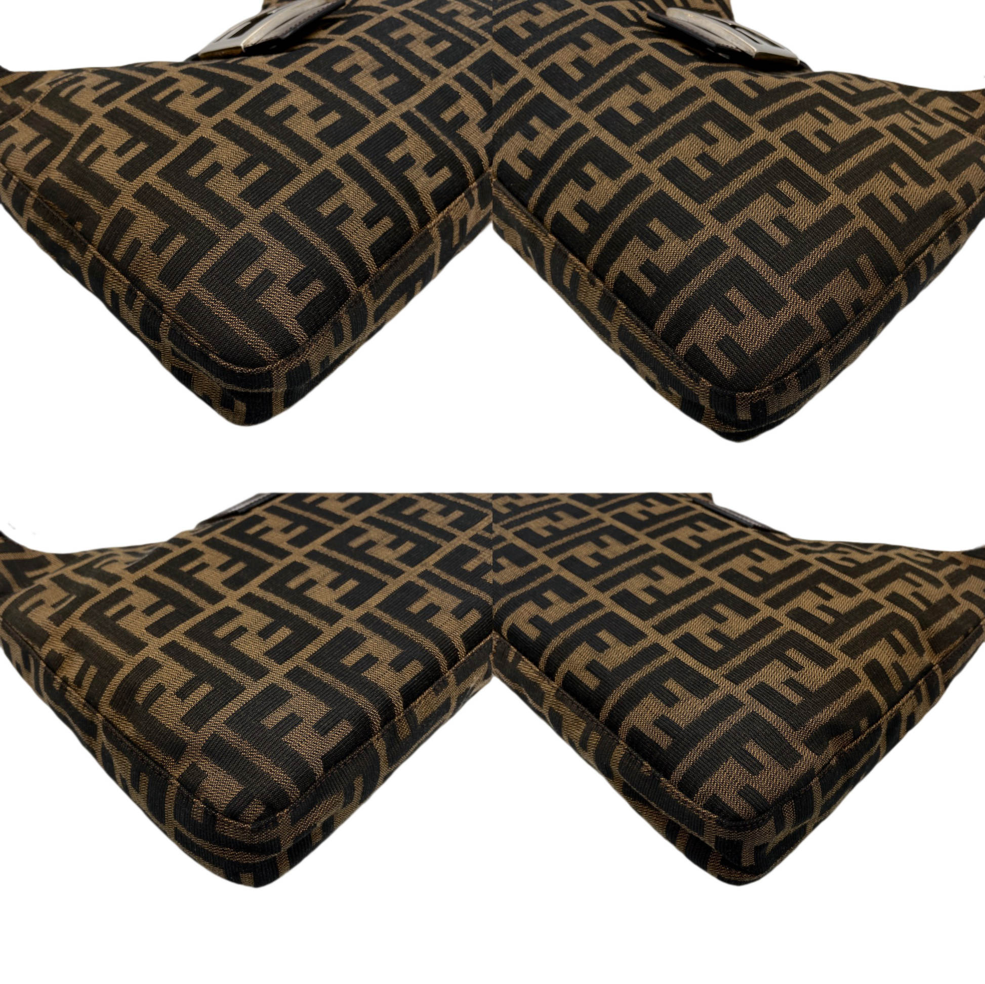 FENDI Zucca Canvas V-Shaped Mamma Baguette Shoulder Bag Brown & Silver