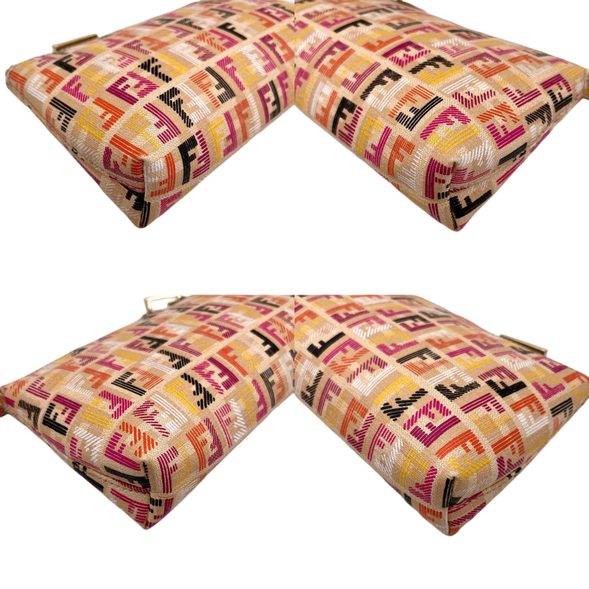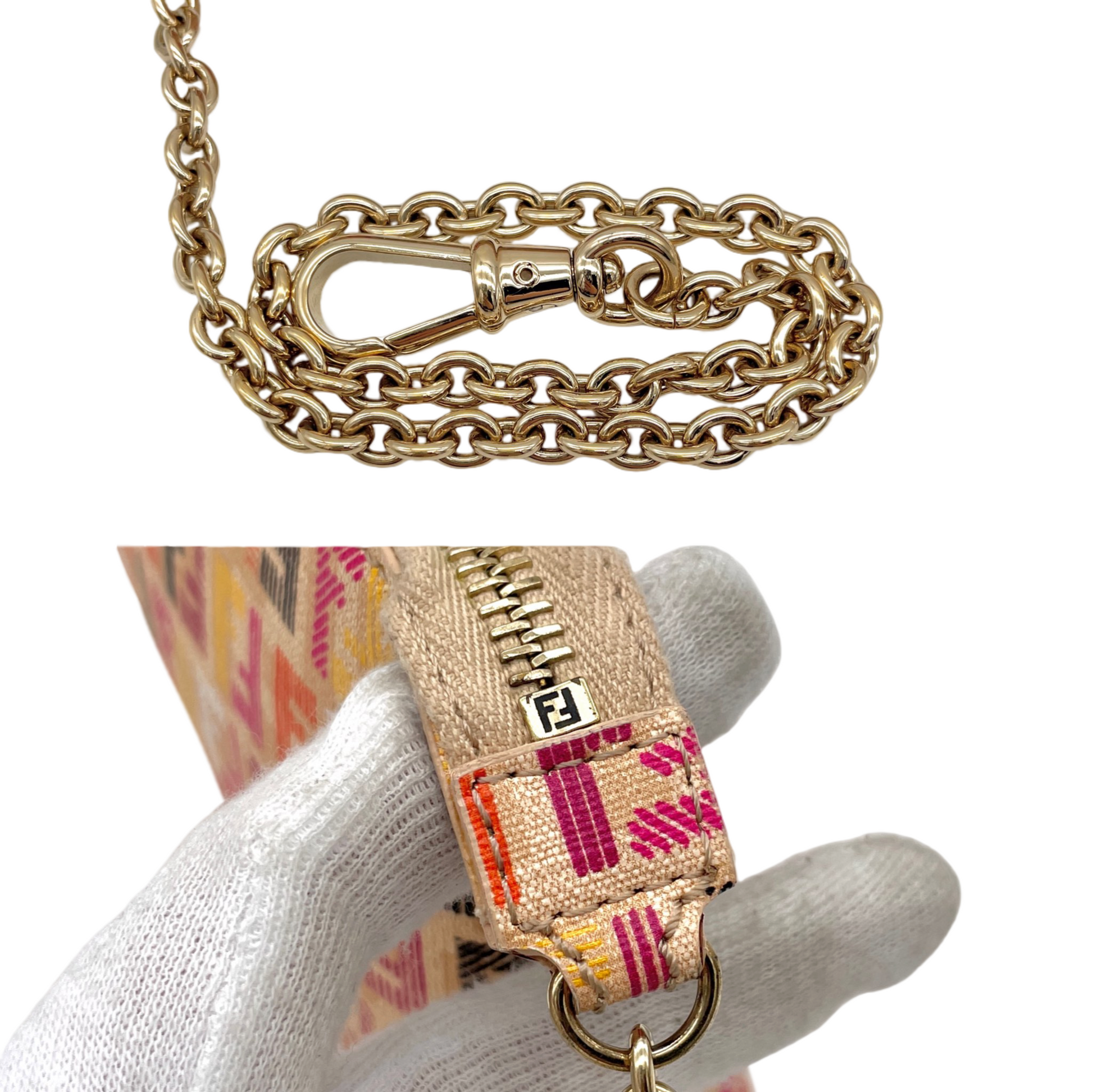 RARE☆☆☆FENDI Multicolor Zucca PVC Chain Handle Accessories Pouch Hand Bag Brown & Muliticolor