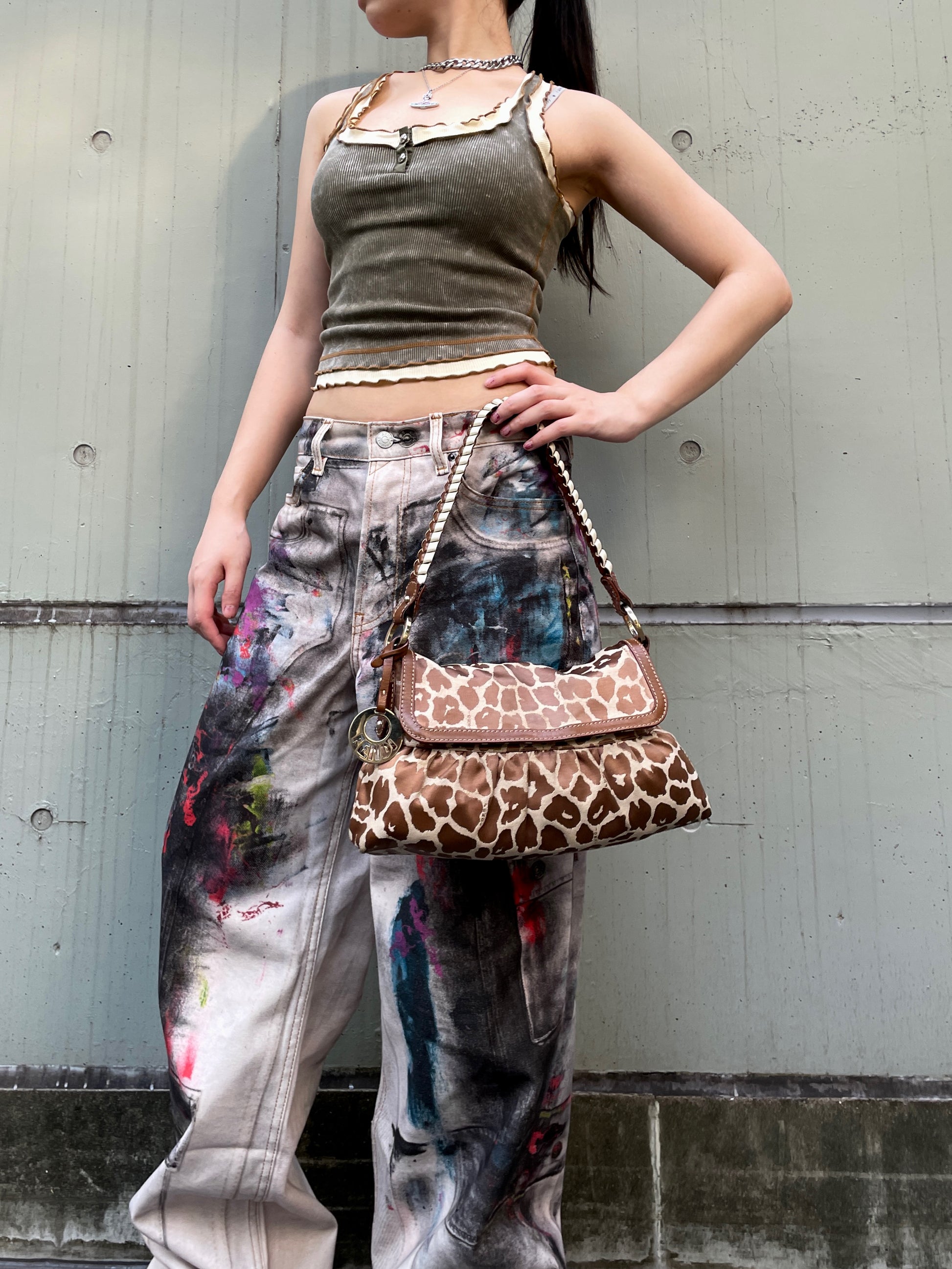 RARE☆☆☆FENDI Leopard Canvas Shef Bag Shoulder Bag Brown
