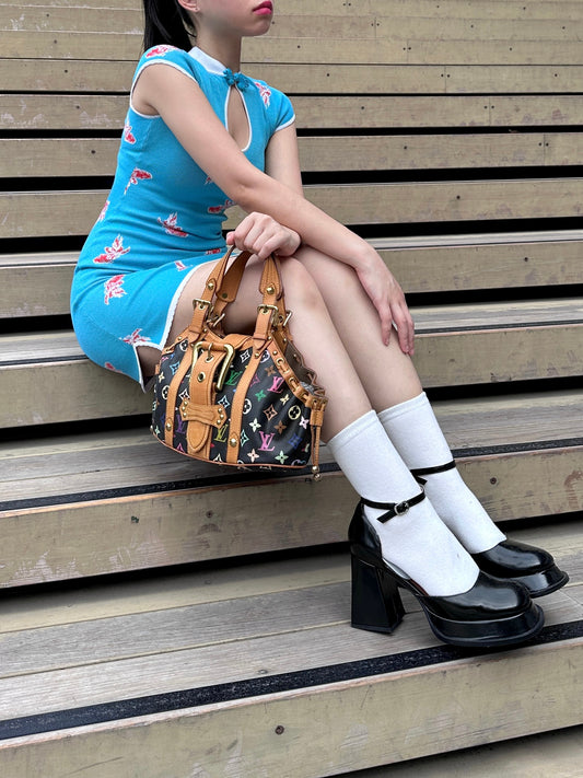RARE☆☆☆☆LOUIS VUITTON Monogram Multicolor Black Theda PM M92346 Hand Bag/ 2004 SS