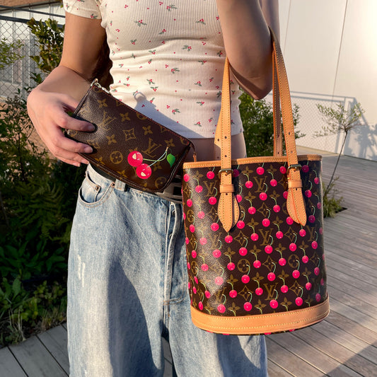 RARE☆☆☆☆☆LOUIS VUITTON Monogram x Takashi Murakami Cherry Cerises Sac Retro PM/M95012 Backet Shoulder Tote Bag