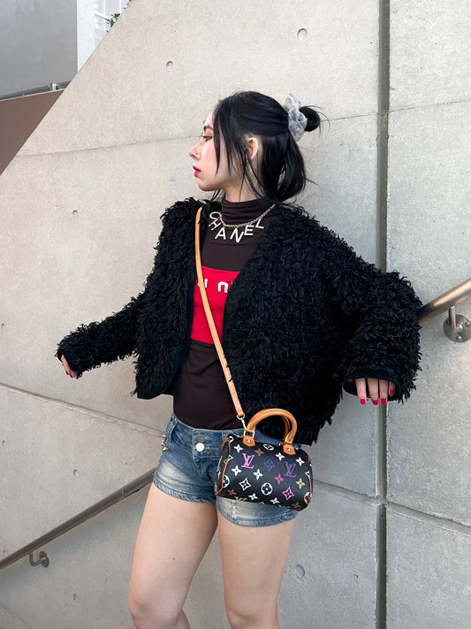 RARE☆☆☆☆LOUIS VUITTON Monogram Multicolor Black Mini Speedy M92644 Hand Bag/ With Shoulder Strap