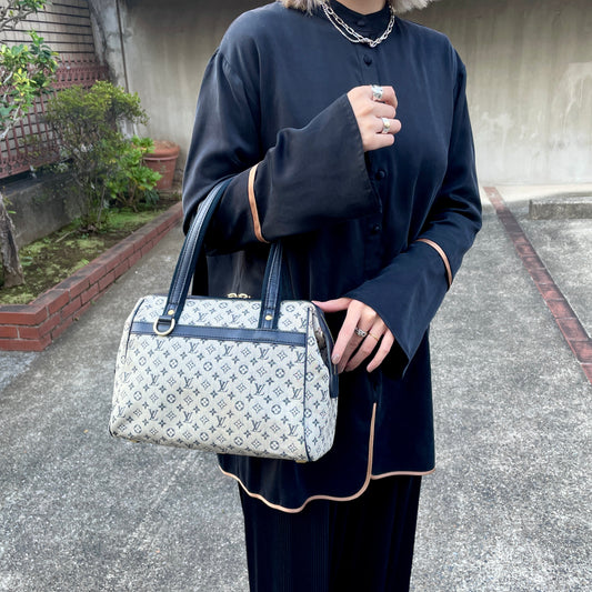 PRELOVED LV 2001 Monogram Mini Lin Josephine PM Hand Bag Gray & Navy