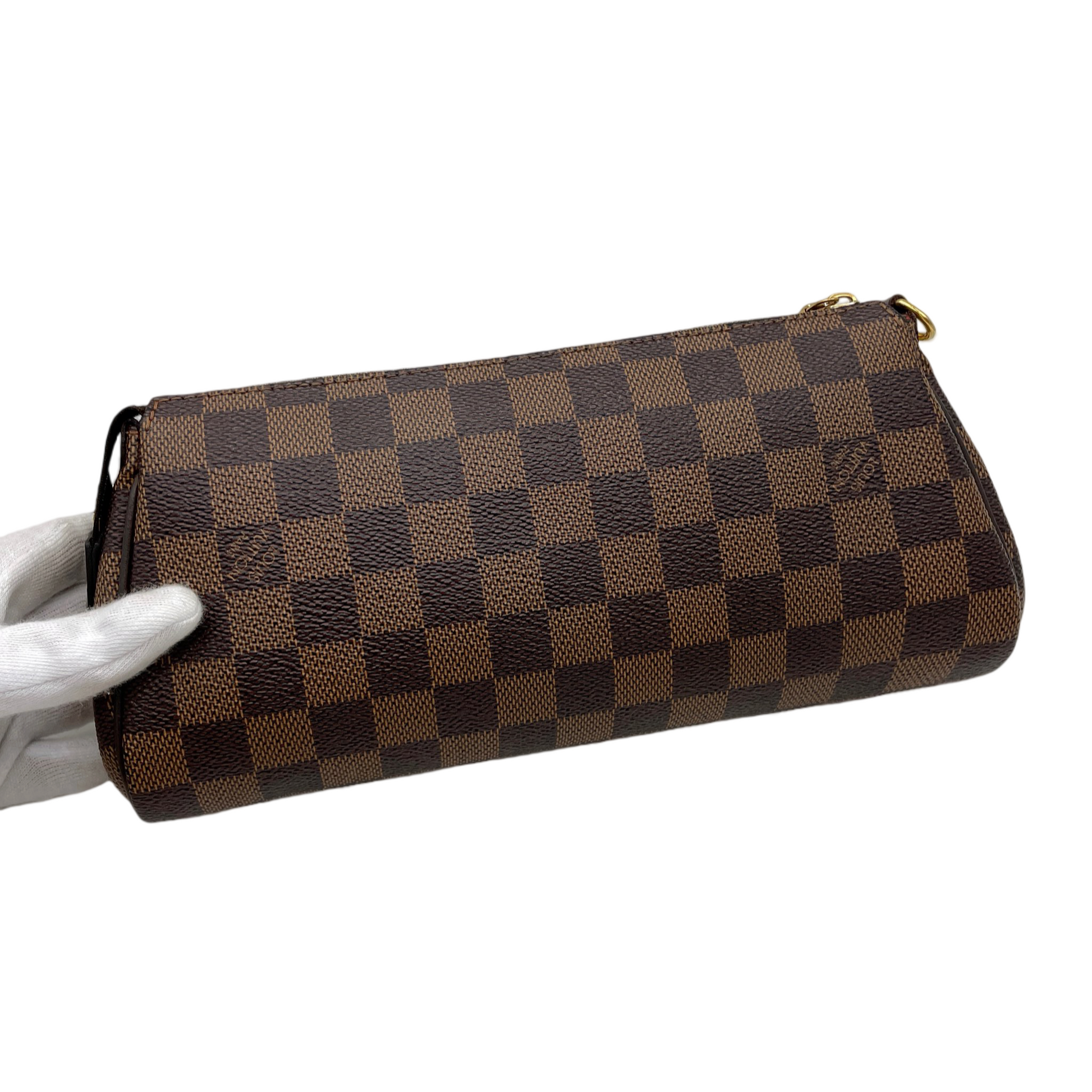 LOUIS VUITTON Damier Ebene Eva N55213 Chain Handle 2-Way Hand Bag Pouch Shoulder Bag Brown & Gold