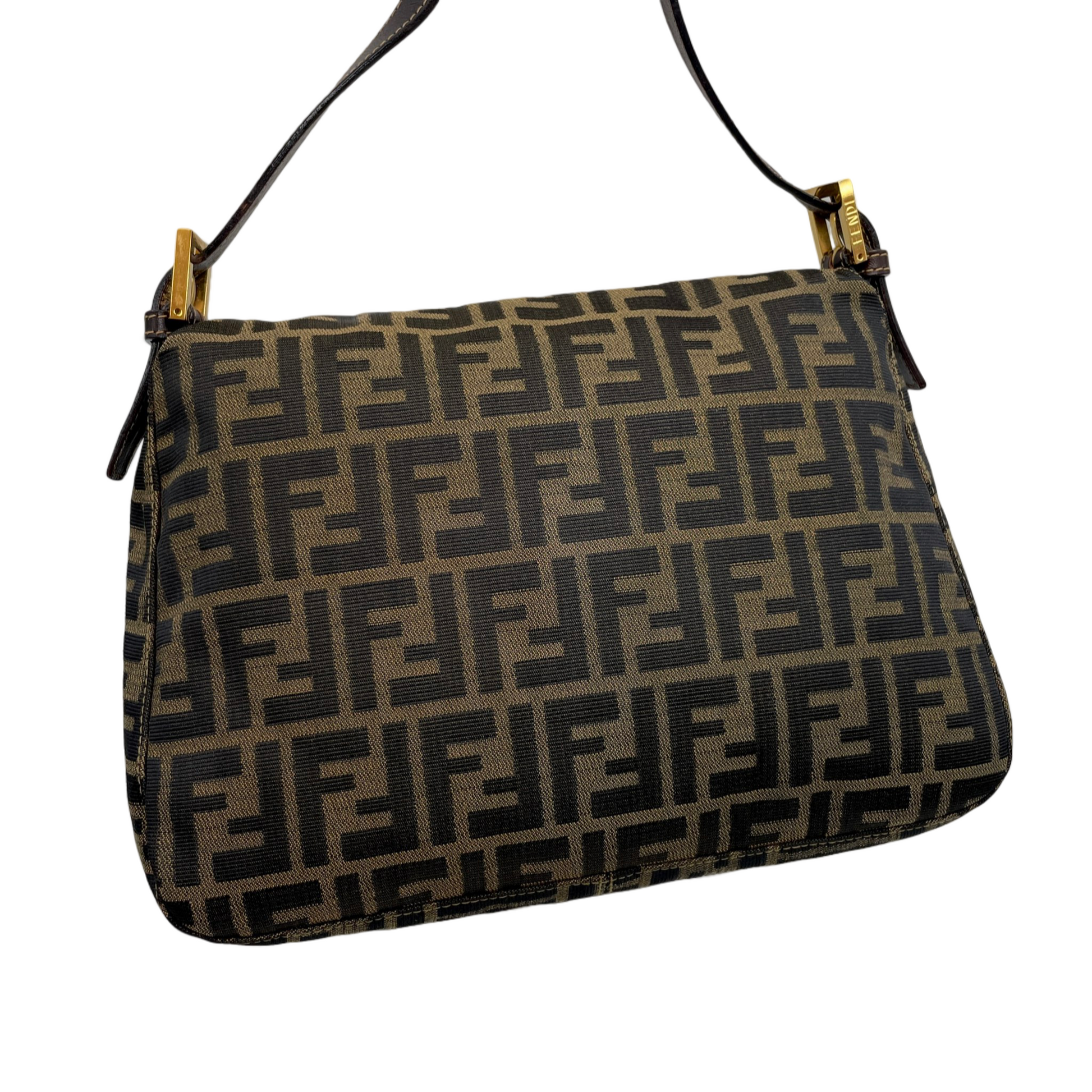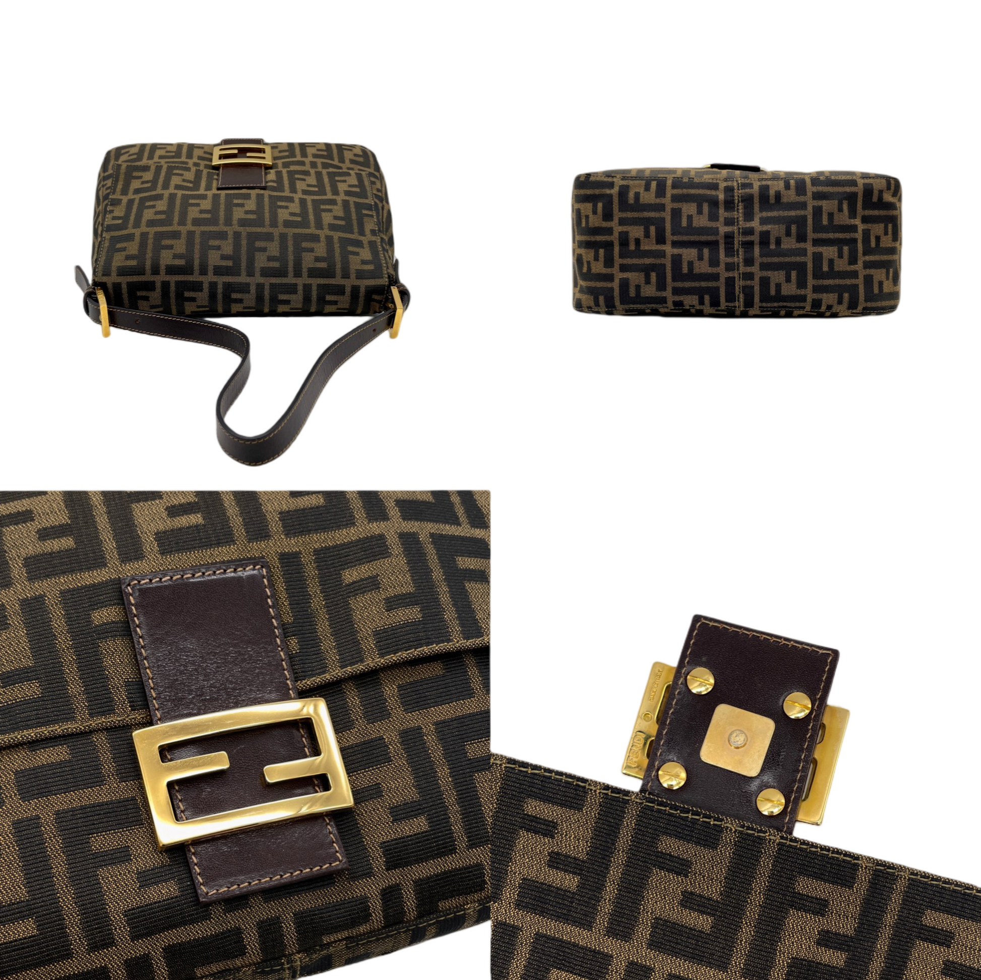 RARE☆☆☆FENDI Zucca Canvas Mamma Baguette GM Shoulder Bag Brown & Gold