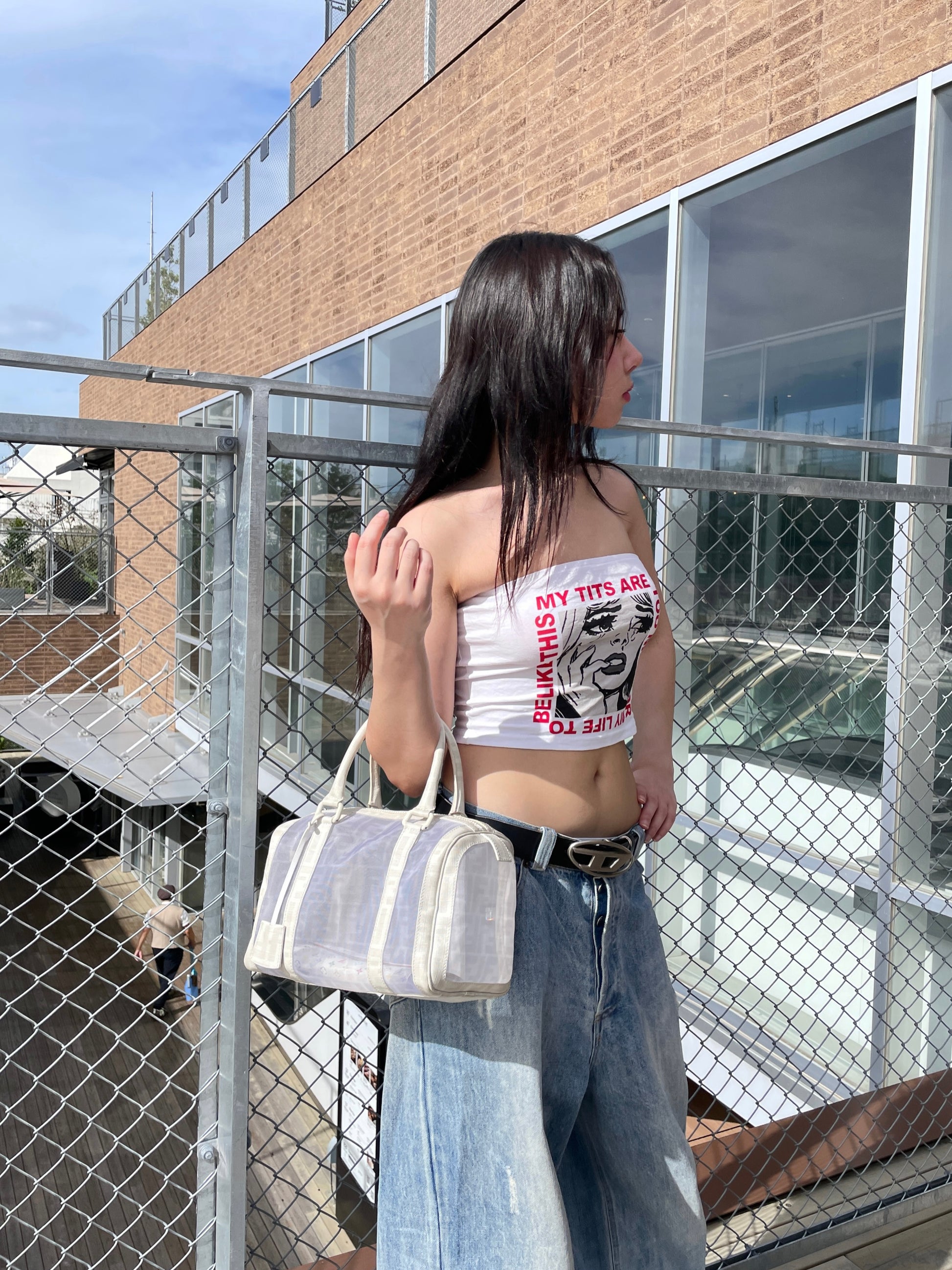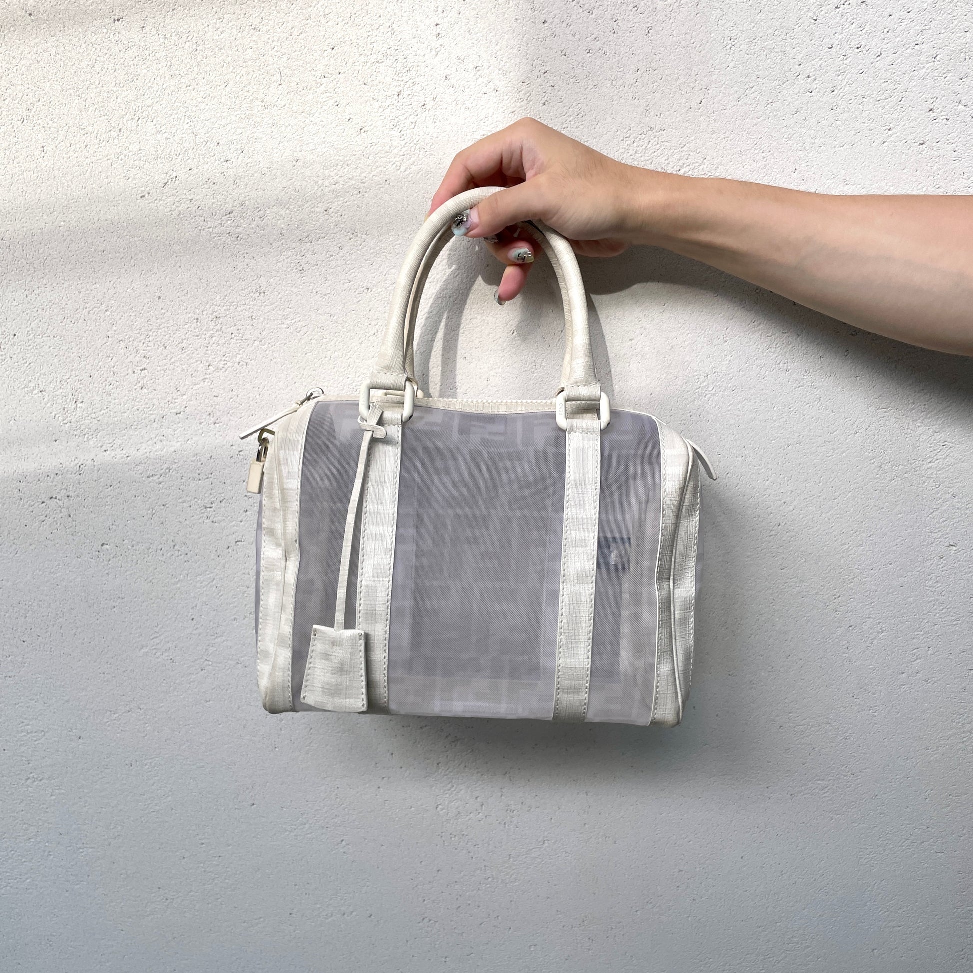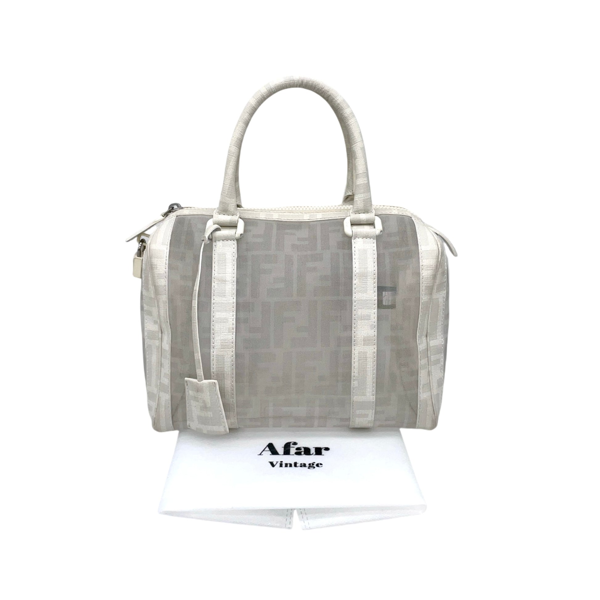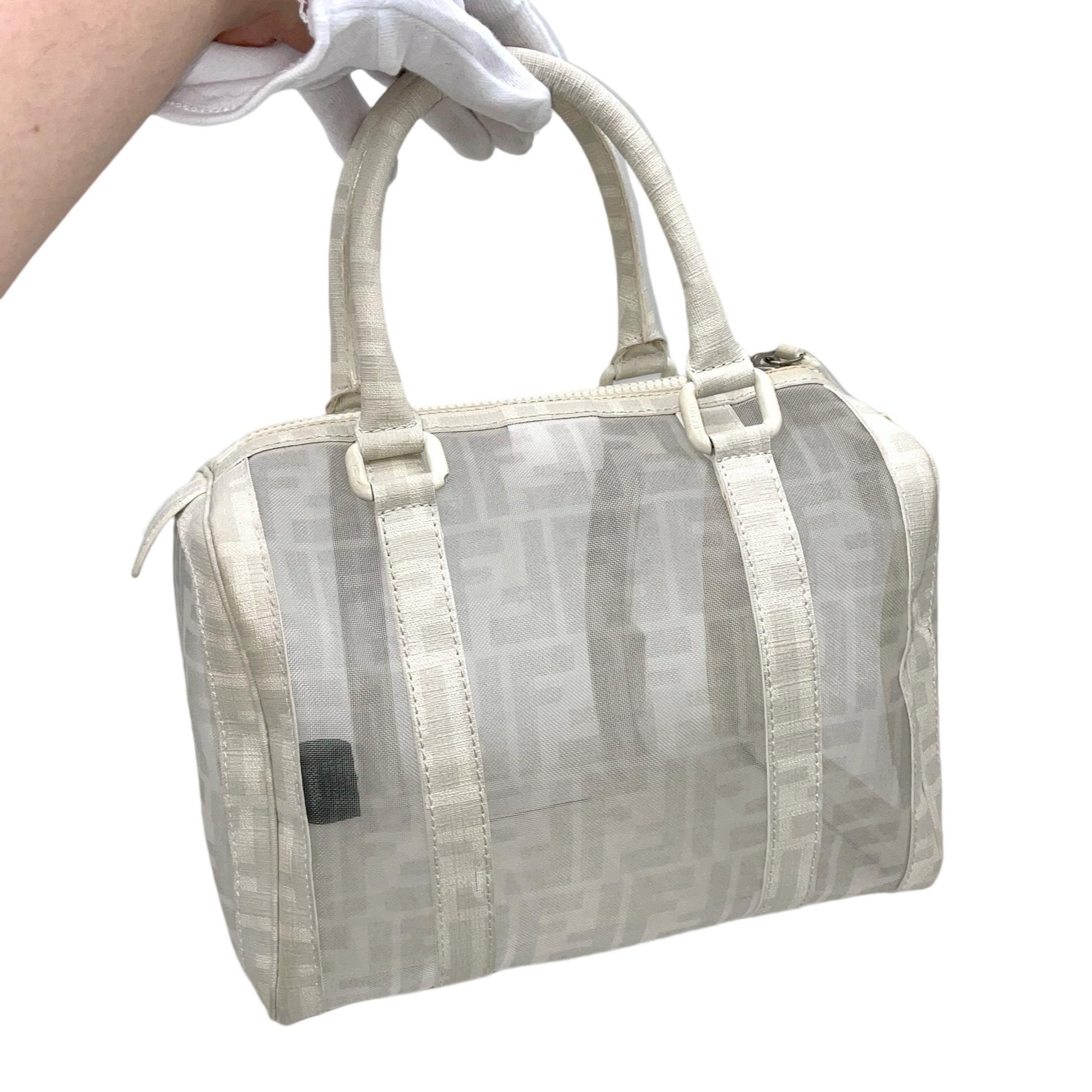 RARE☆☆☆FENDI Zucca Mesh Boston Handbag PM White