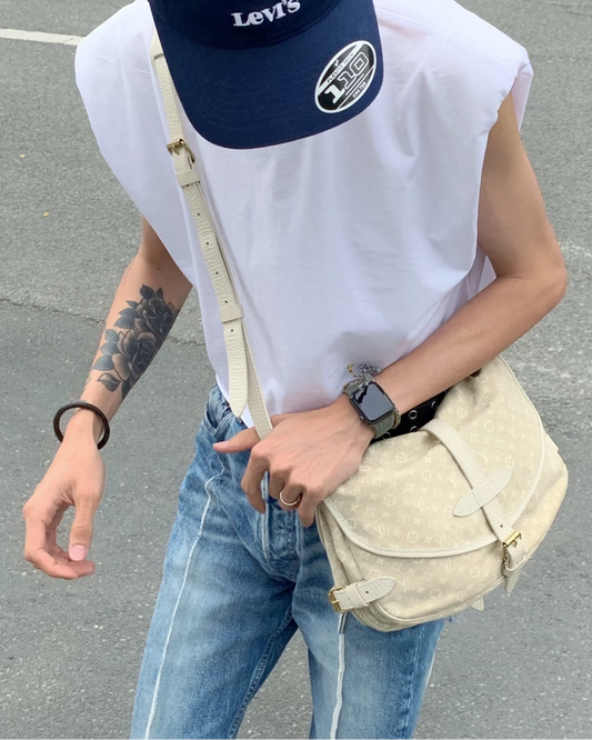 LOUIS VUITTON 2007 Monogram Mini Lin Saumur Shoulder Bag M95314 Beige & White
