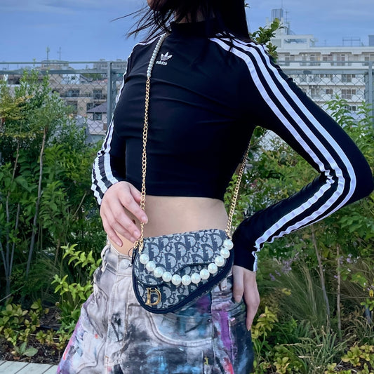 CHRISTIAN DIOR 2000 Trotter Canvas D Logo Pendant Mini Saddle Pouch Navy & Gold